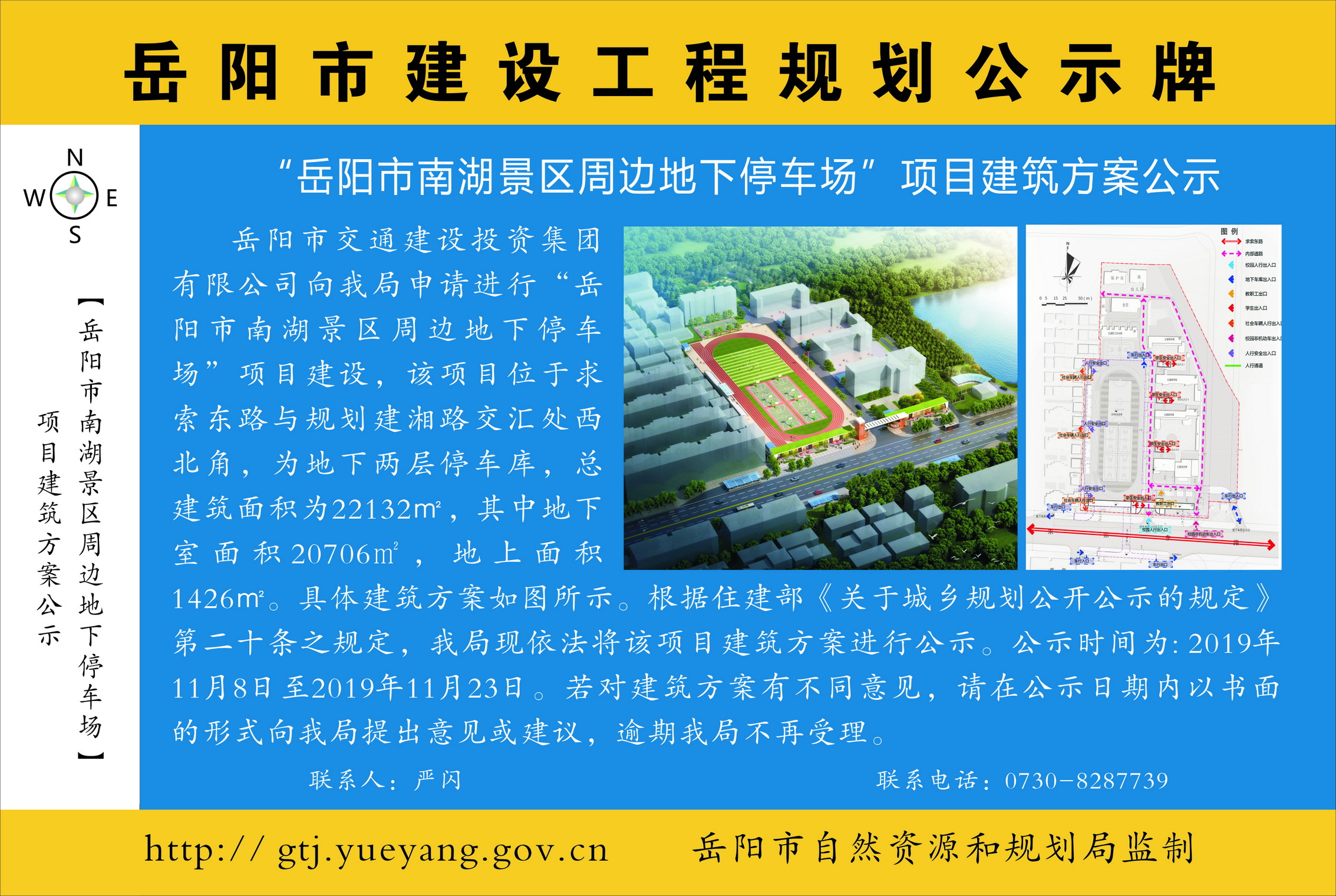 “岳阳市南湖景区周边地下停车场”项目建筑方案公示