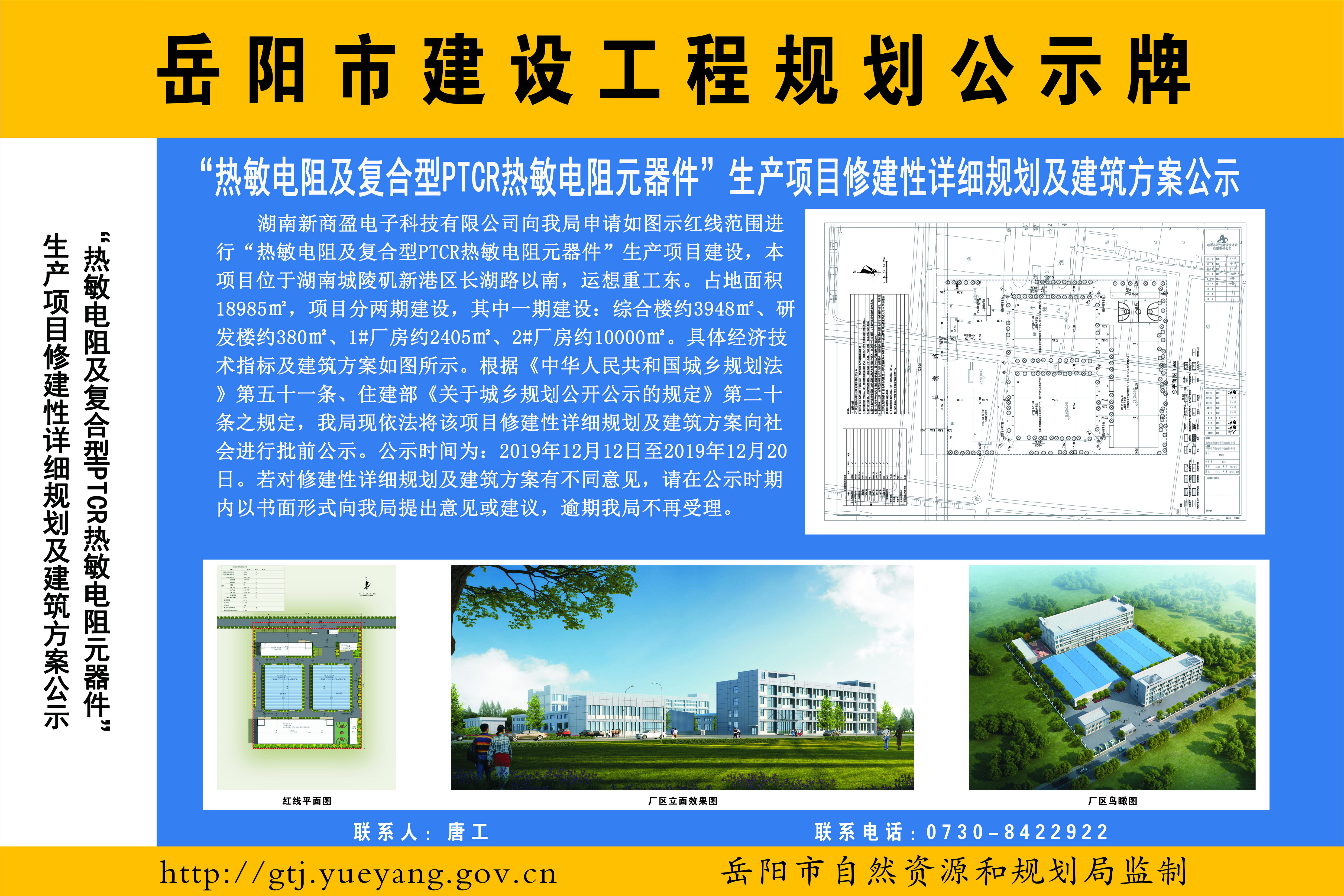 “热敏电阻及复合型PTCR热敏电阻元器件”生产项目修建性详细规划及建筑方案公示