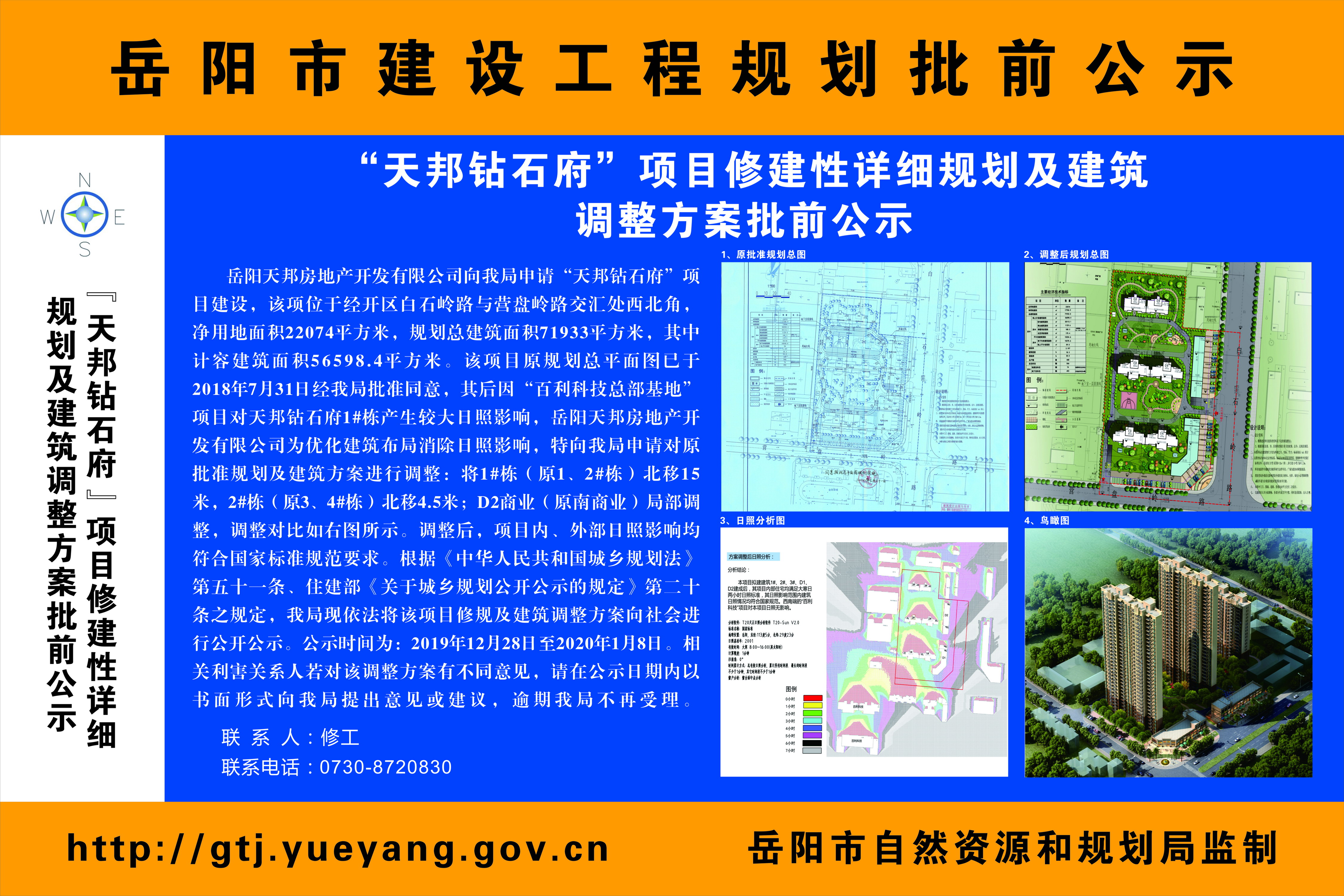 “天邦钻石府”项目修建性详细规划及建筑调整方案批前公示