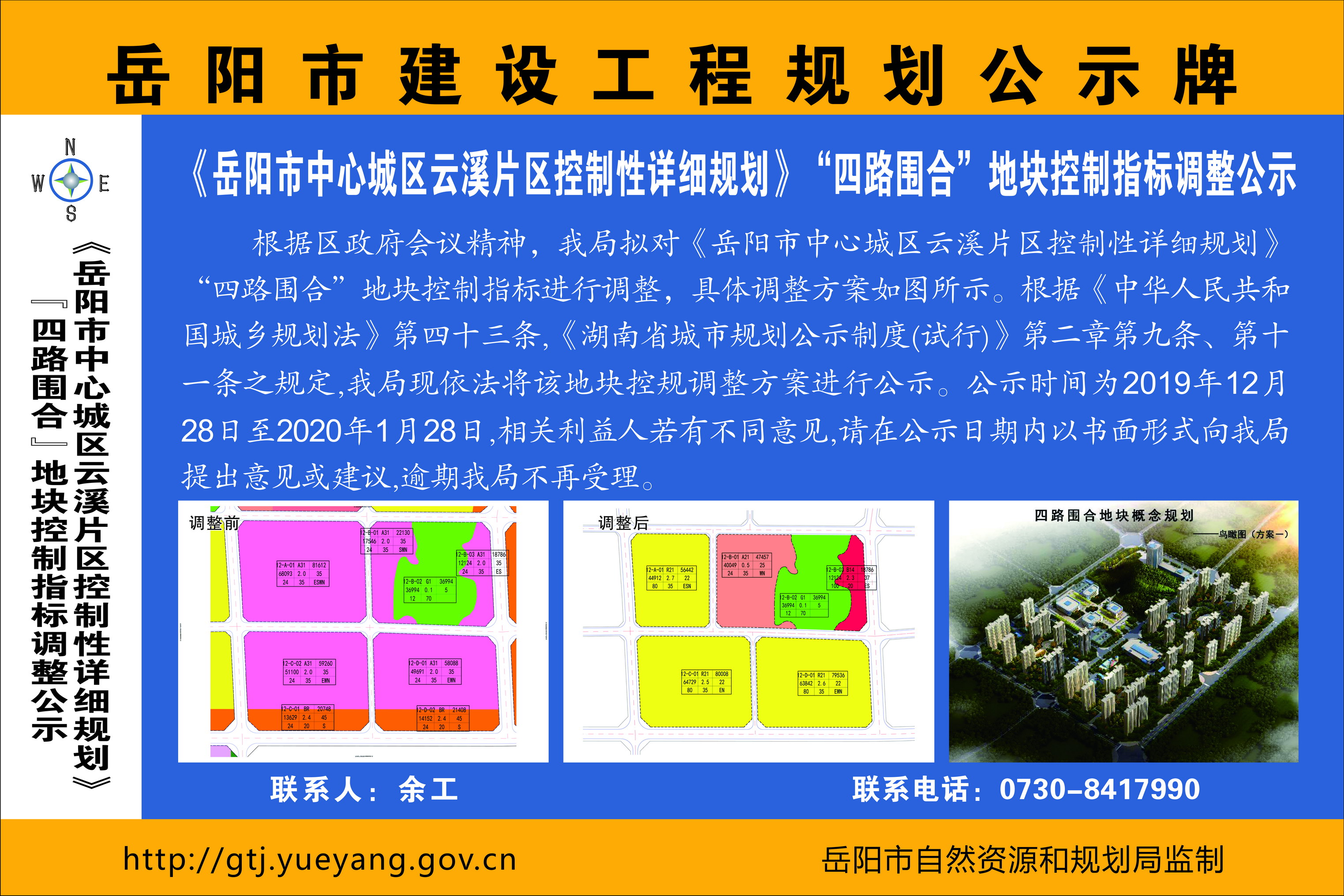 《岳阳市中心城区云溪片区控制性详细规划》“四路围合”地块控制指标调整公示