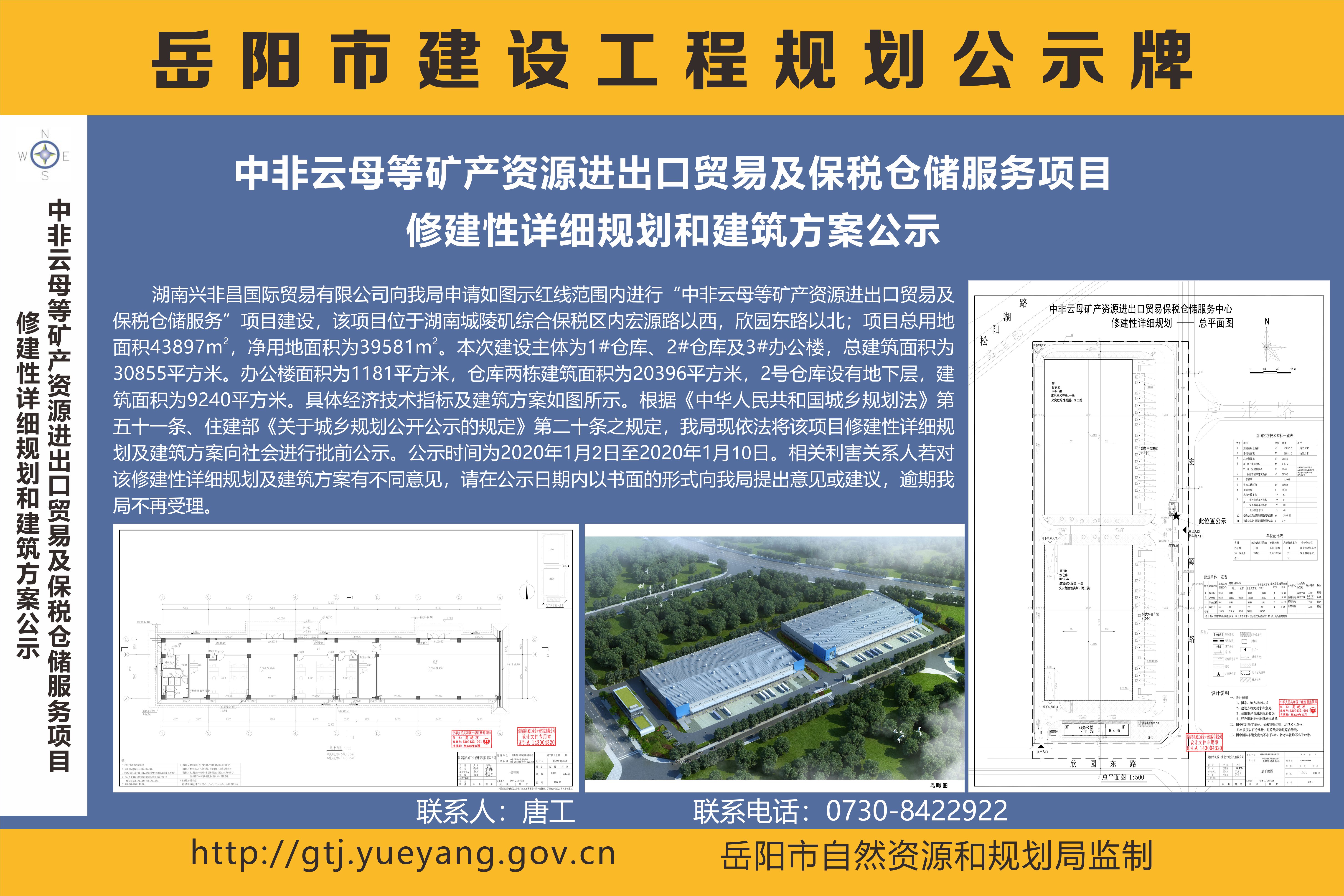 中非云母等矿产资源进出口贸易及保税仓储服务项目修建性详细规划和建筑方案公示