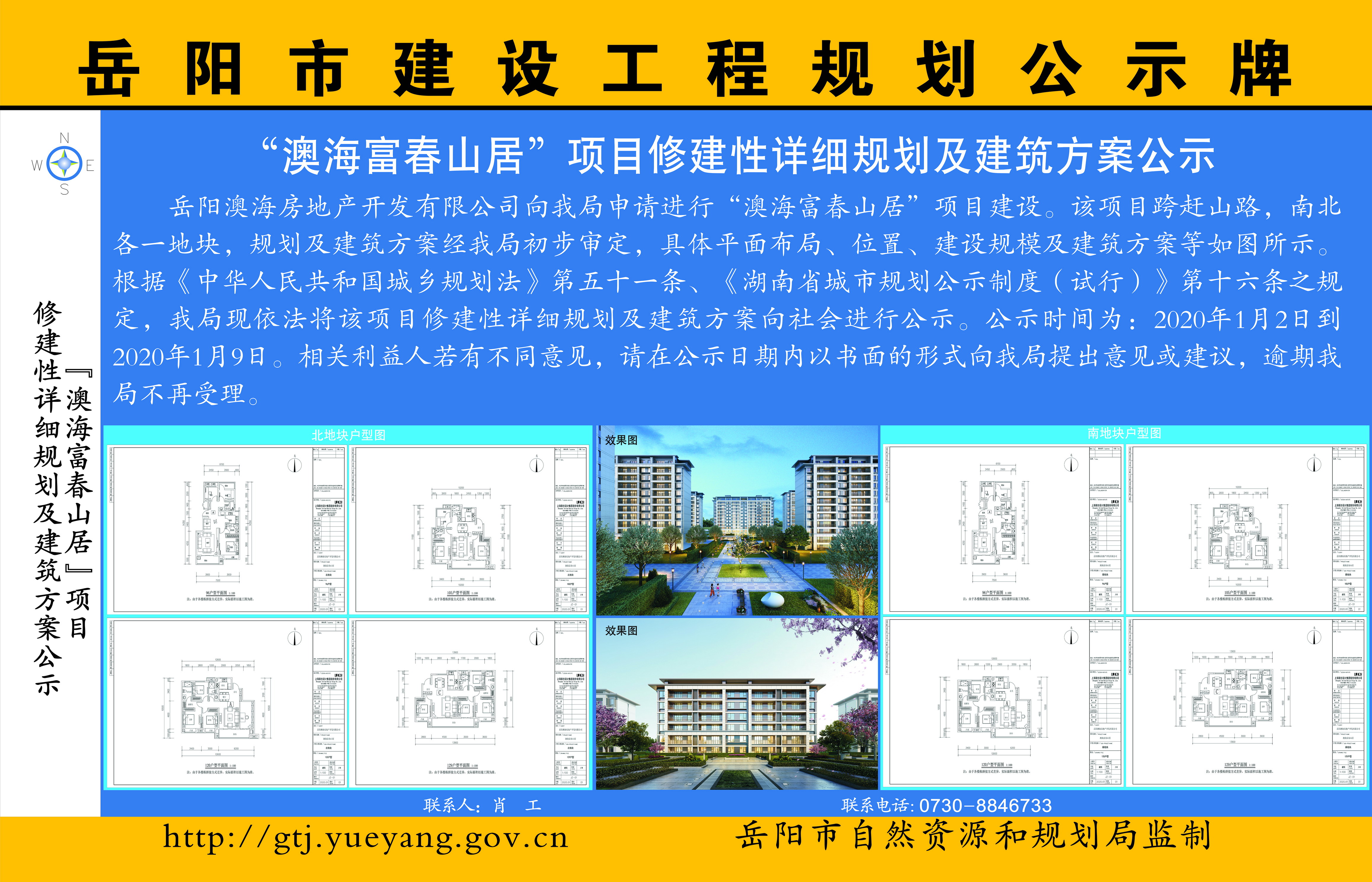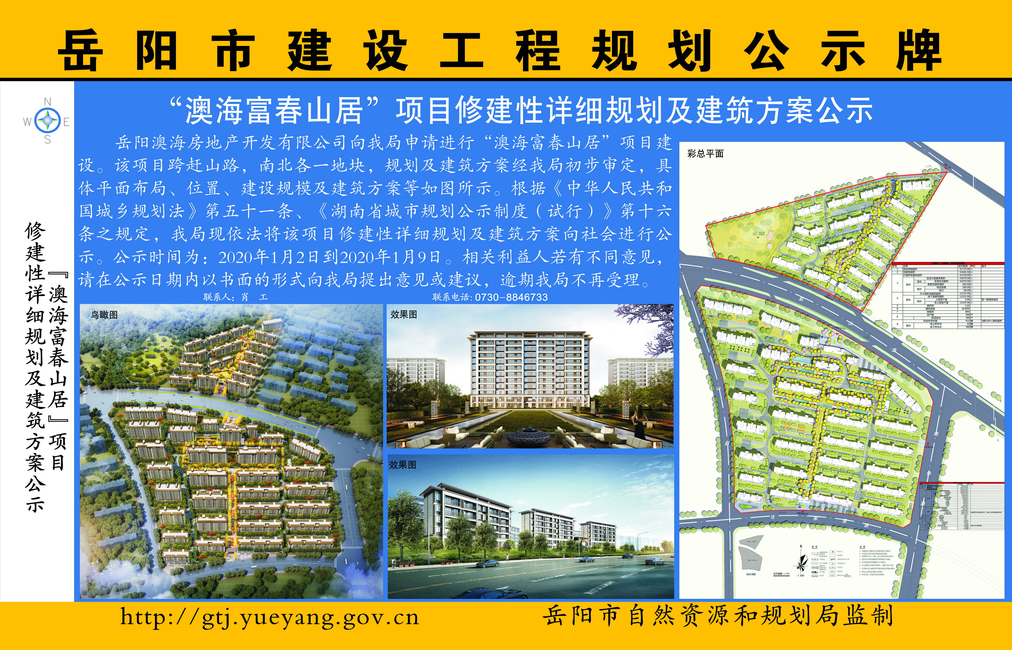 “澳海富春山居”项目修建性详细规划及建筑方案公示