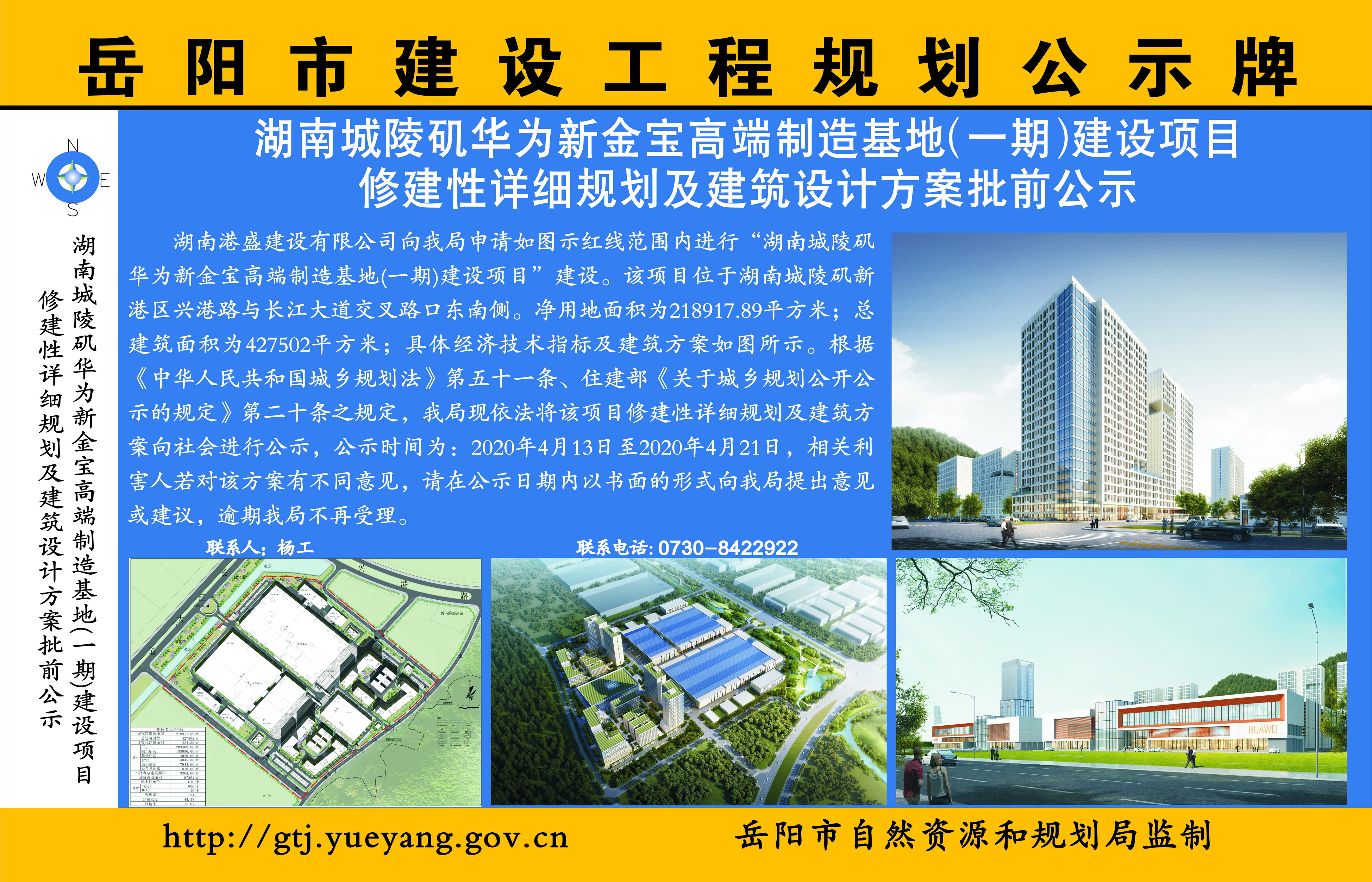 湖南城陵矶华为新金宝高端制造基地(一期)建设项目修建性详细规划及建筑设计方案批前公示