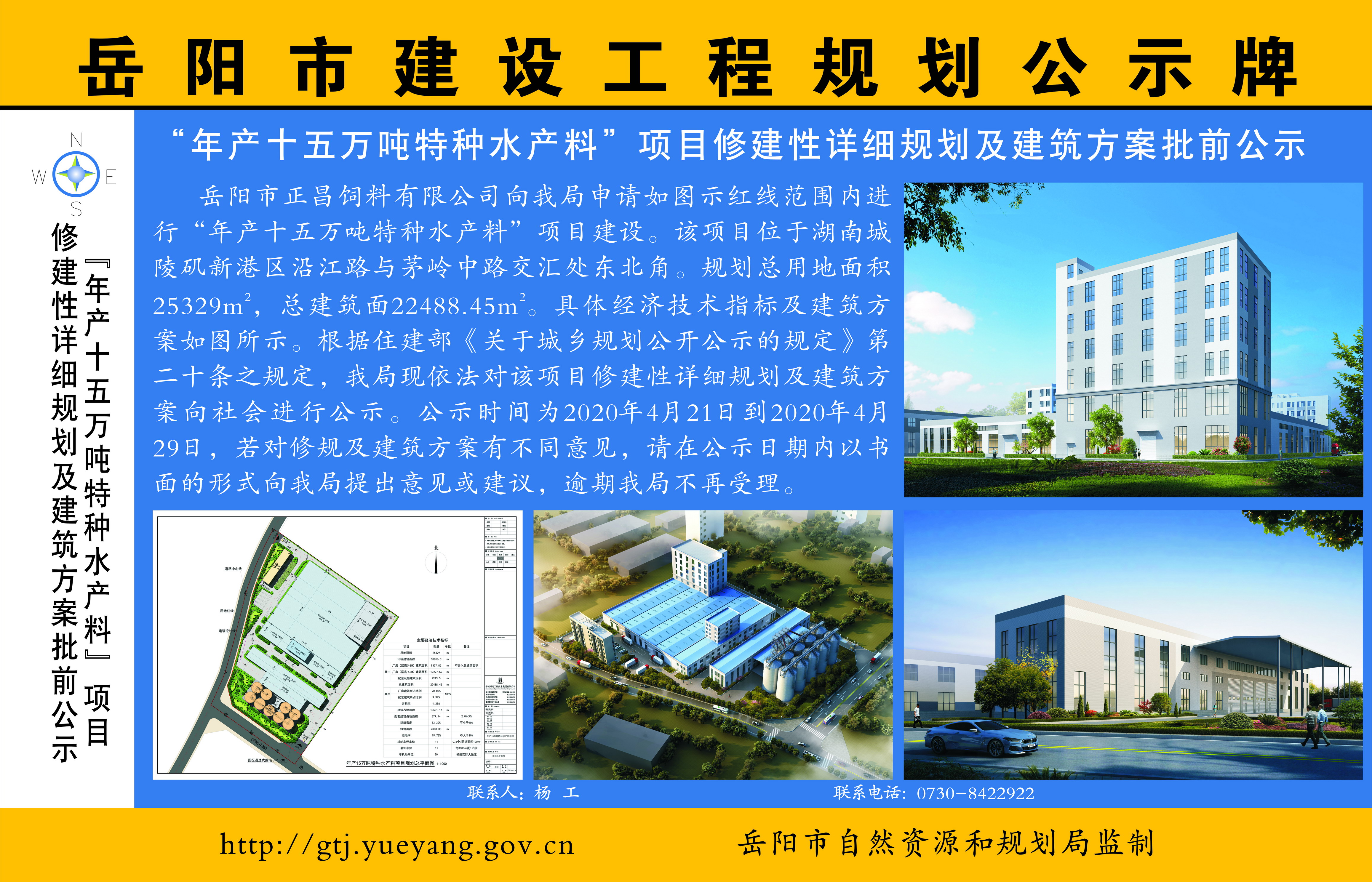 “年产十五万吨特种水产料”项目修建性详细规划及建筑方案批前公示