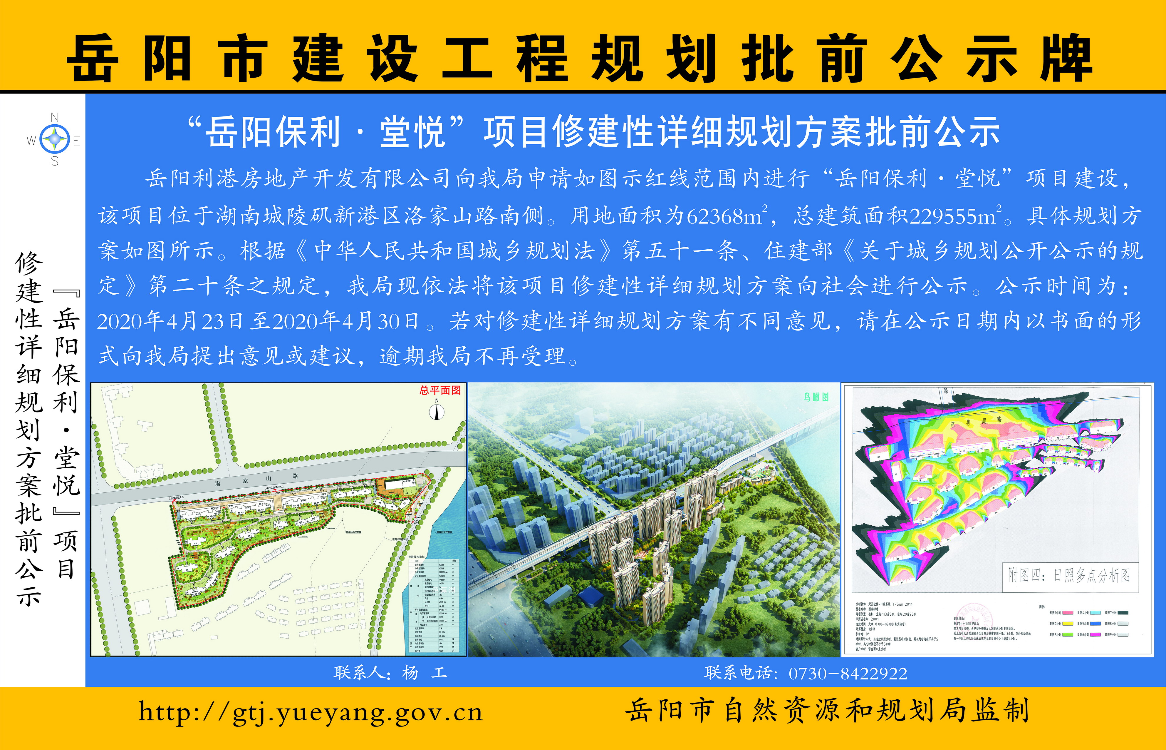 “岳阳保利·堂悦”项目修建性详细规划方案批前公示