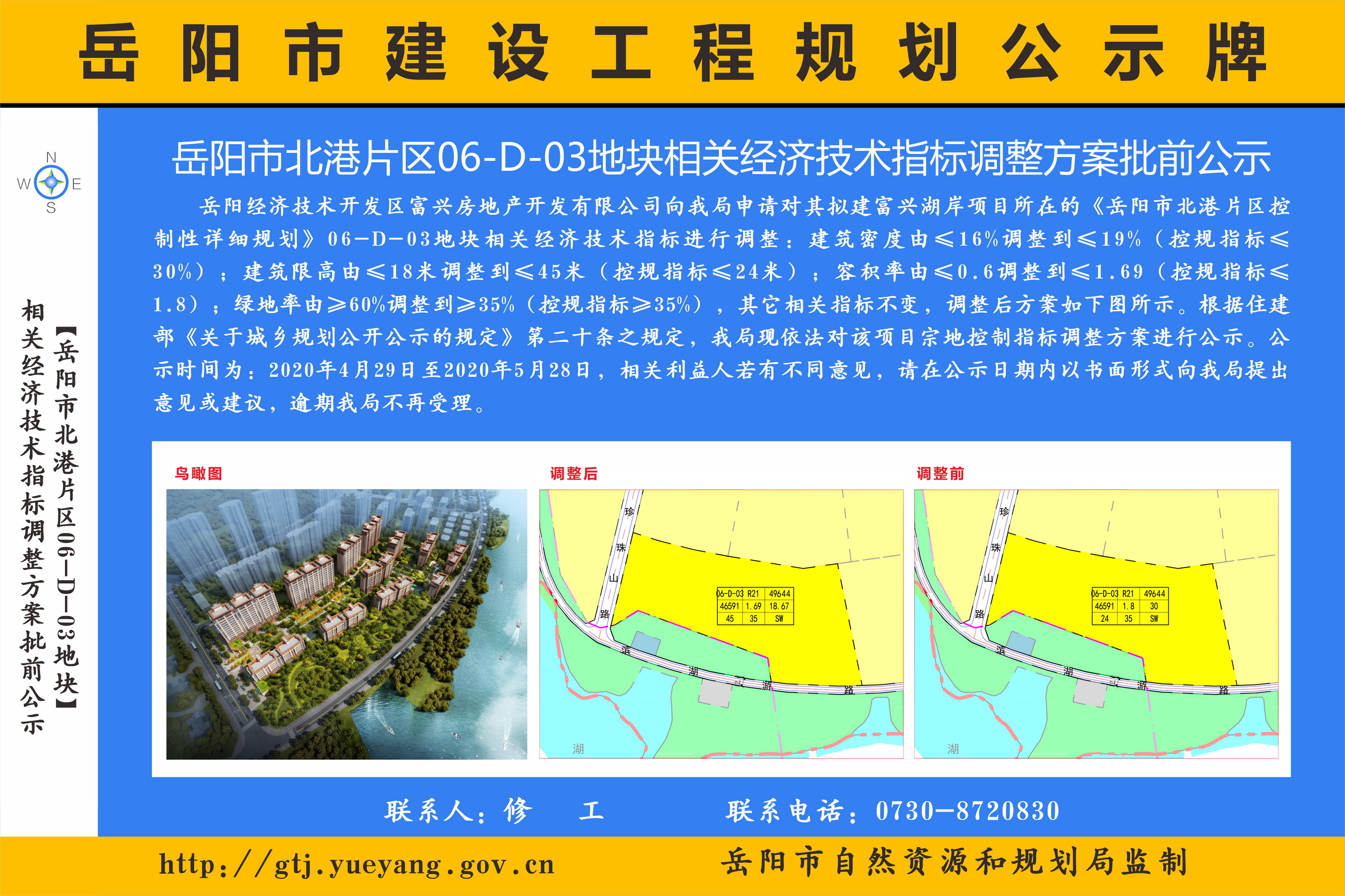岳阳市北港片区06-D-03地块相关经济技术指标调整方案批前公示