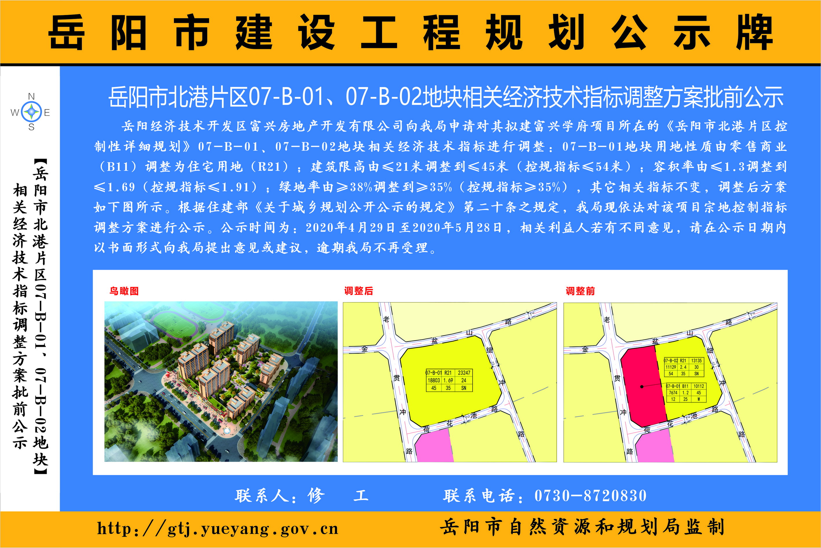 岳阳市北港片区07-B-01、07-B-02地块相关经济技术指标调整方案批前公示