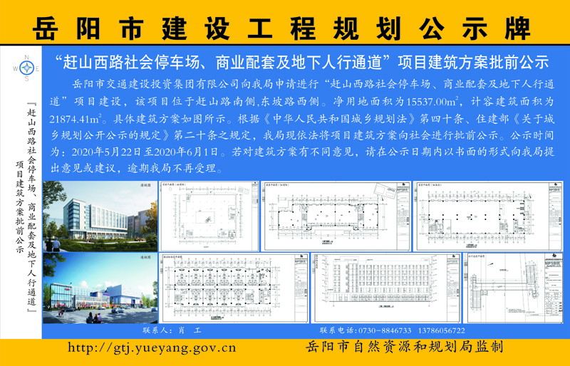 “赶山西路社会停车场、商业配套及地下人行通道”项目建筑方案批前公示