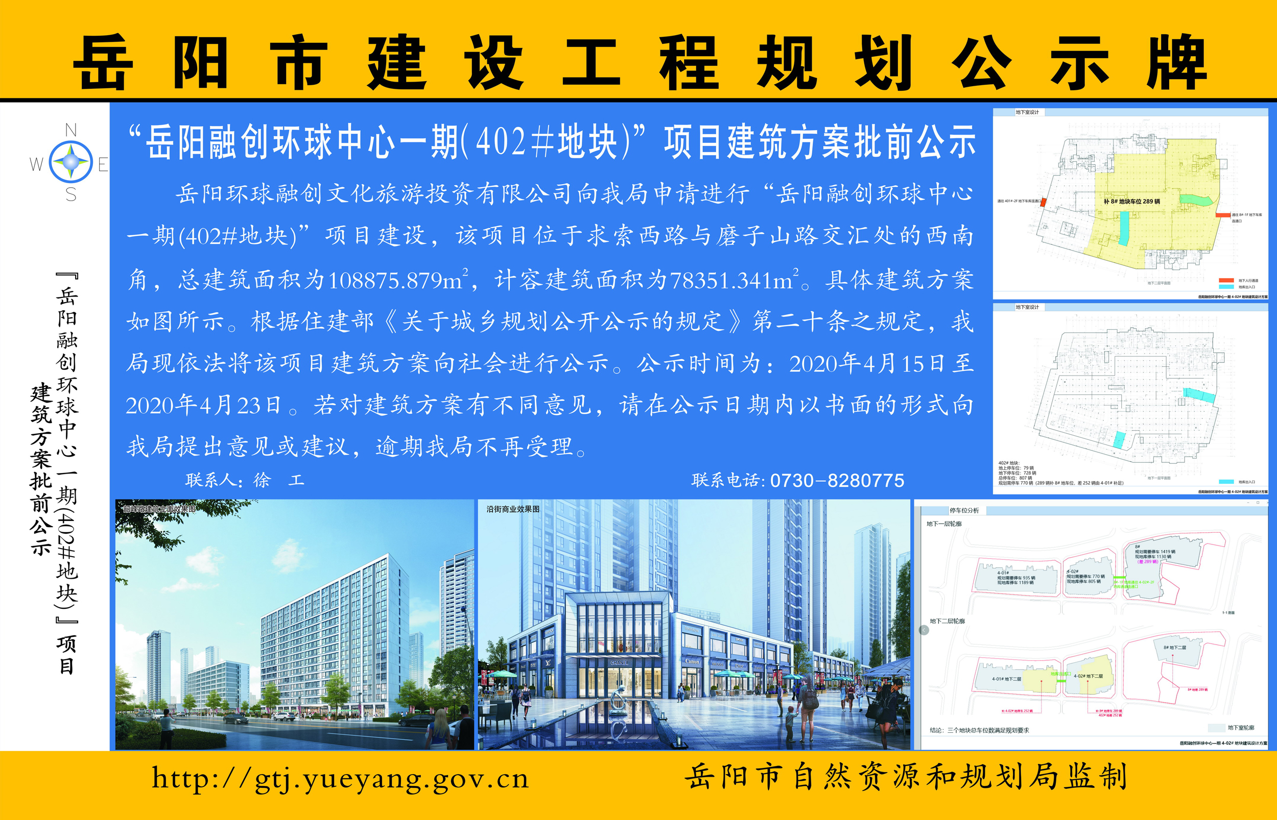 “岳阳融创环球中心一期(4-02#地块)”项目建筑方案批前公示