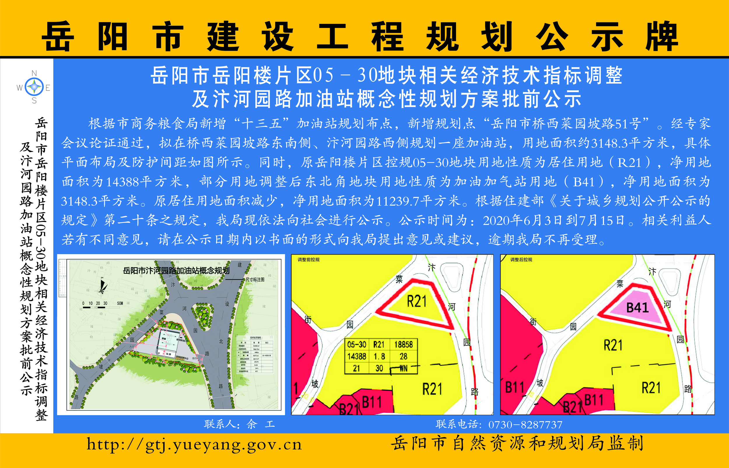 岳阳市岳阳楼片区05-30地块相关经济技术指标调整及汴河园路加油站概念性规划方案批前公示