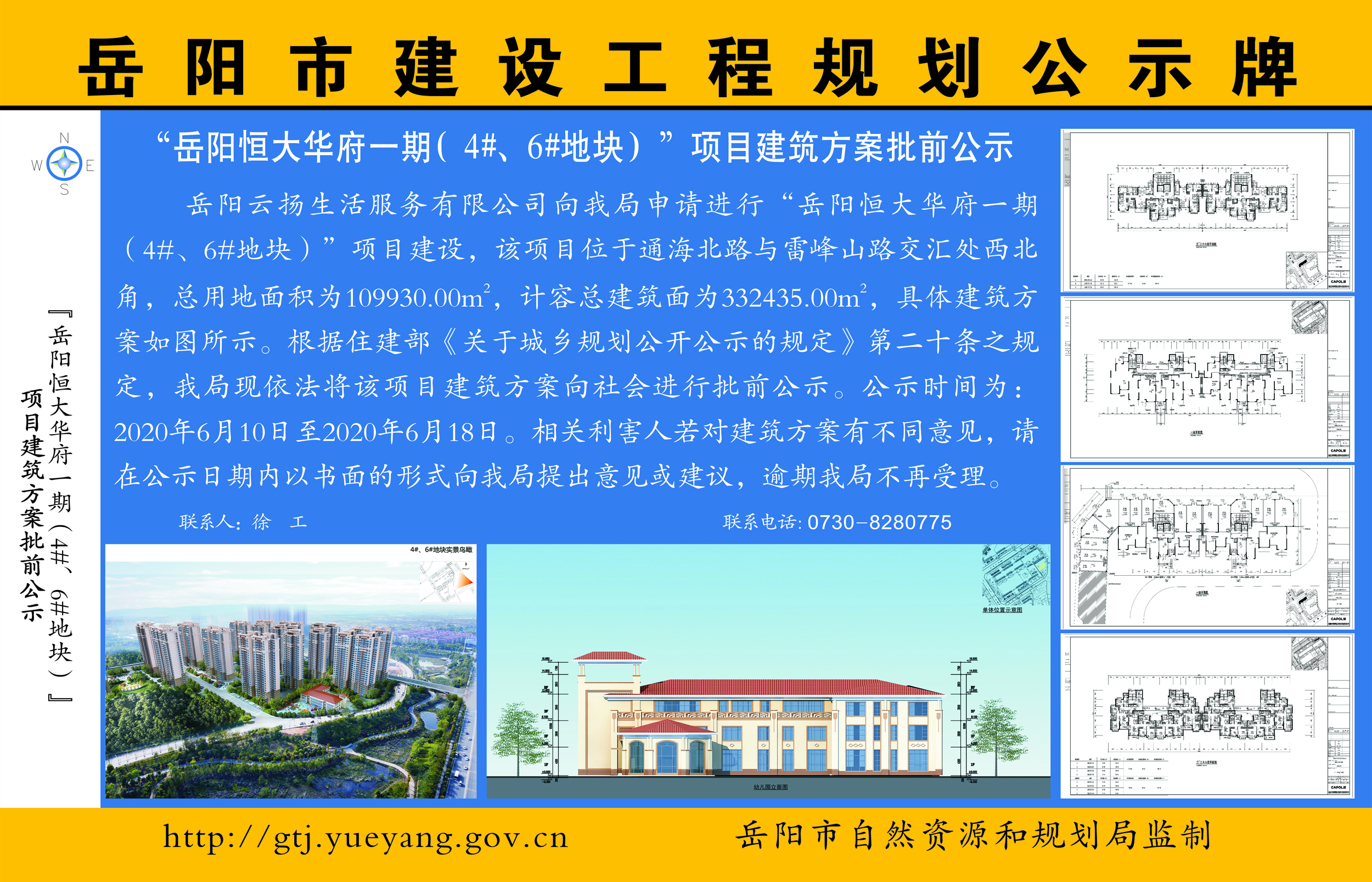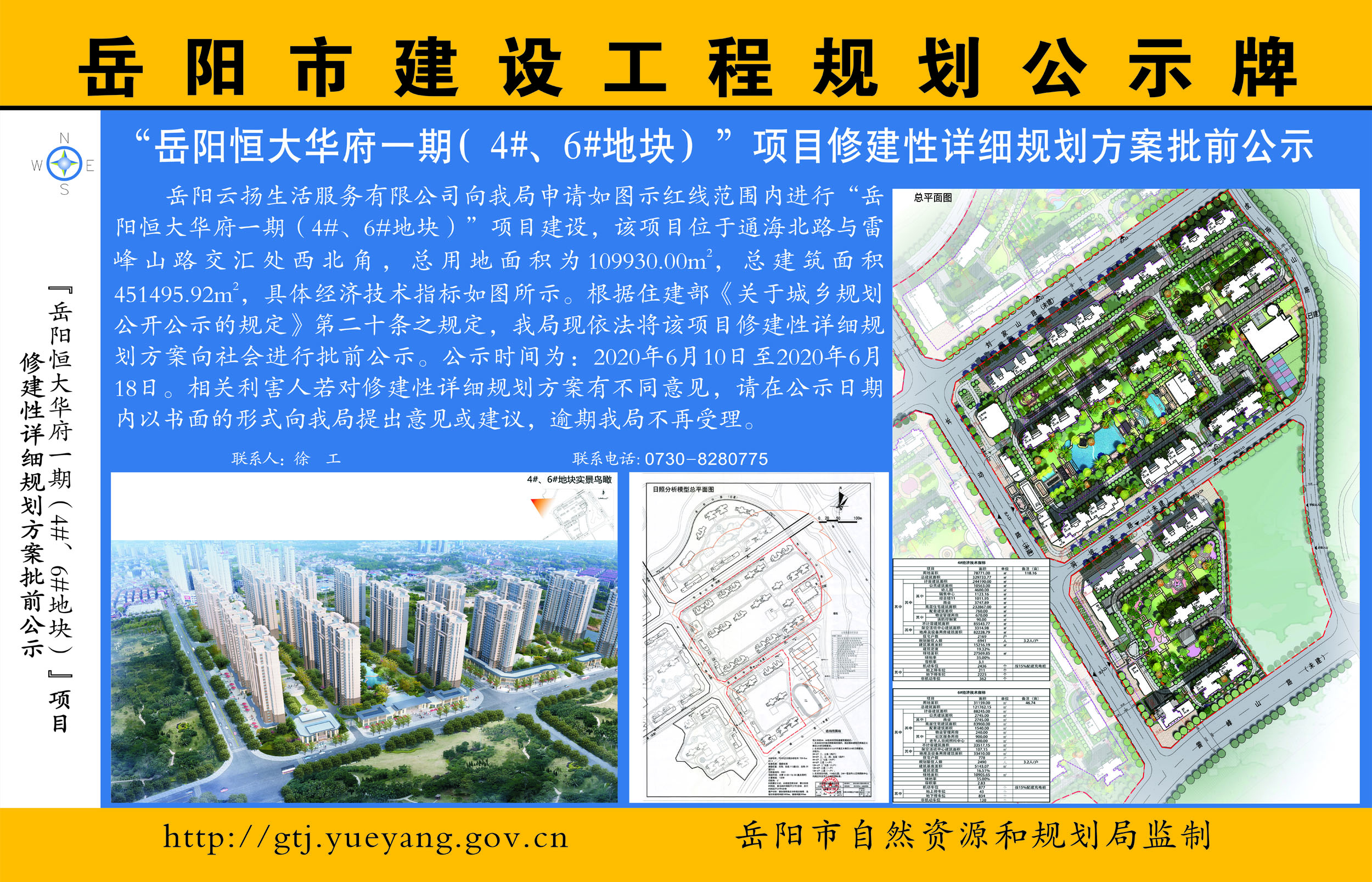 “岳阳恒大华府一期(4#、6#地块)”项目修建性详细规划和建筑方案批前公示