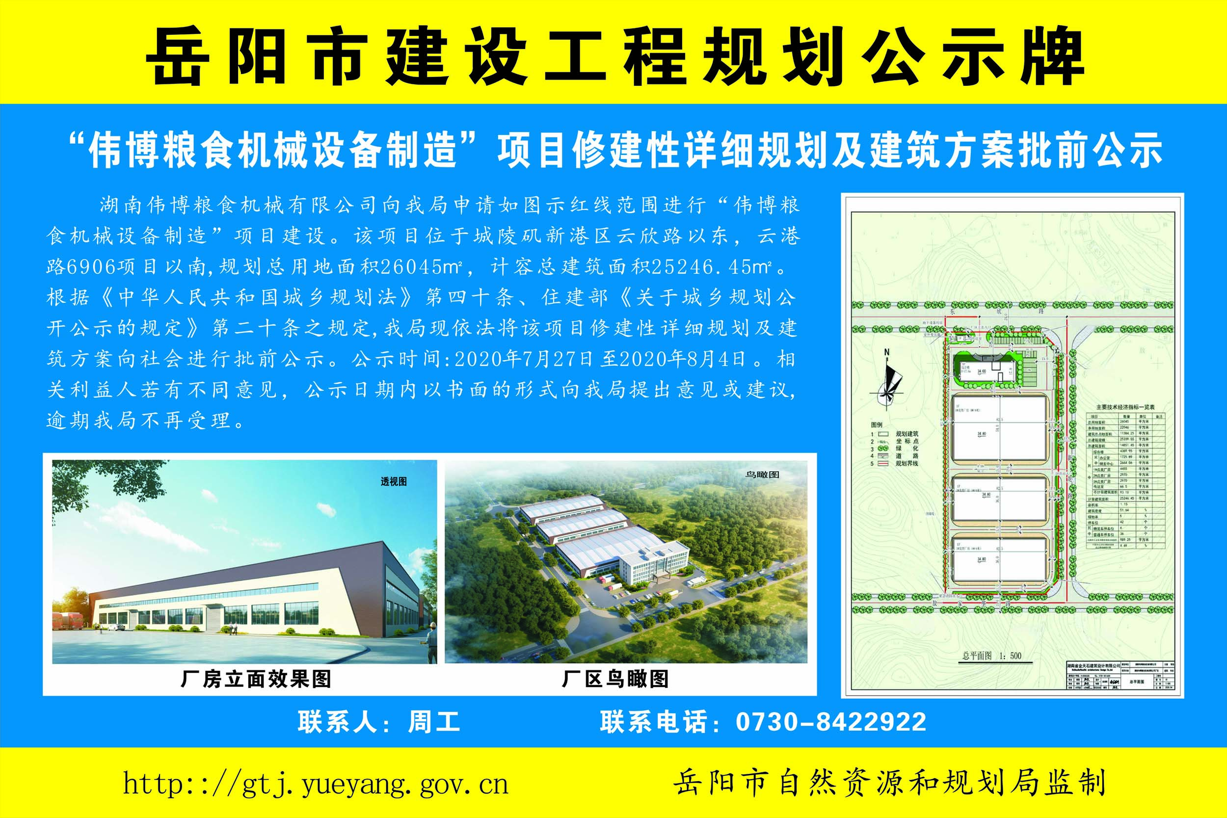 “伟博粮食机械设备制造”项目修建性详细规划及建筑方案批前公示