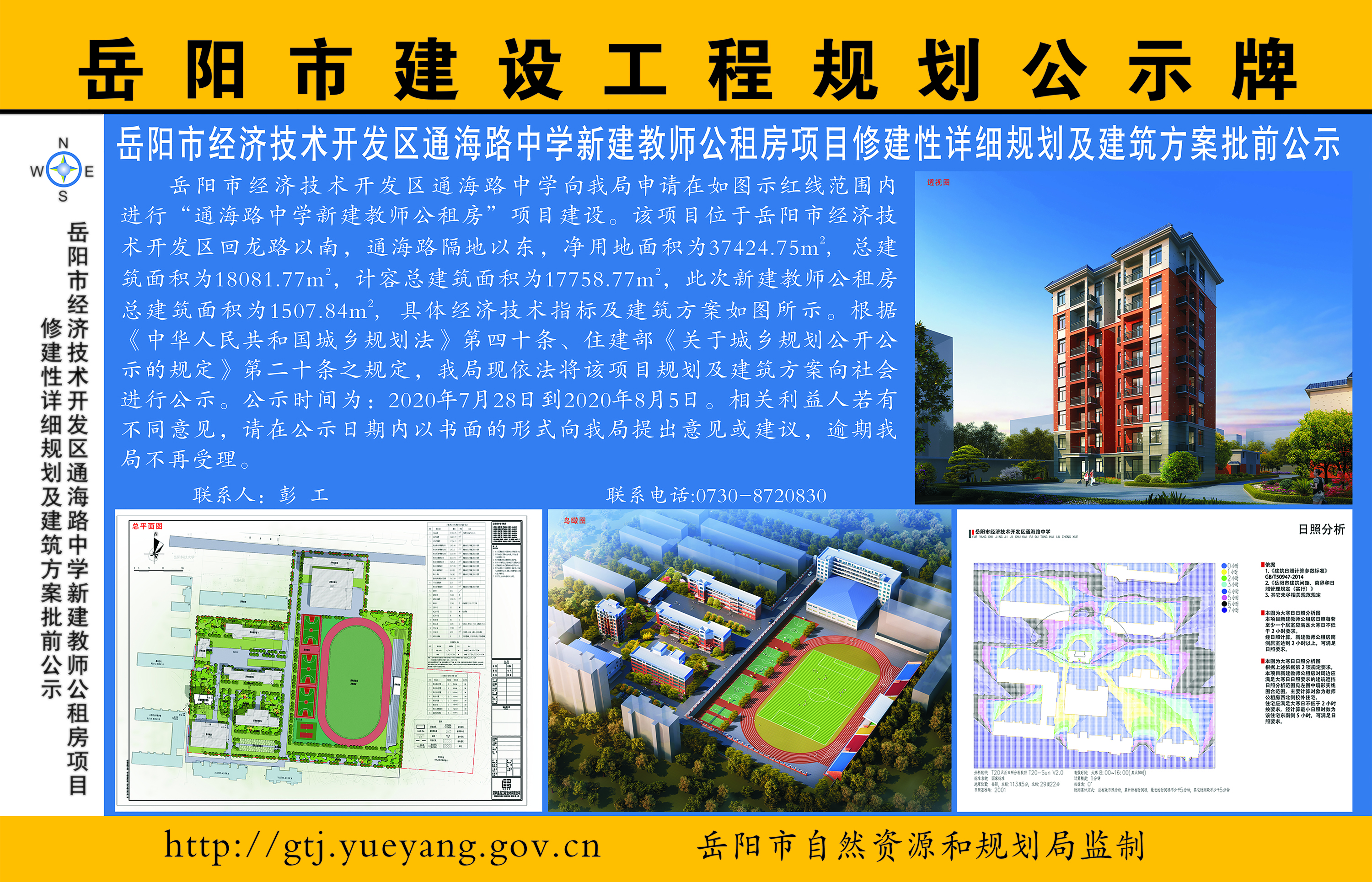 岳阳市经济技术开发区通海路中学新建教师公租房项目修建性详细规划及建筑方案批前公示