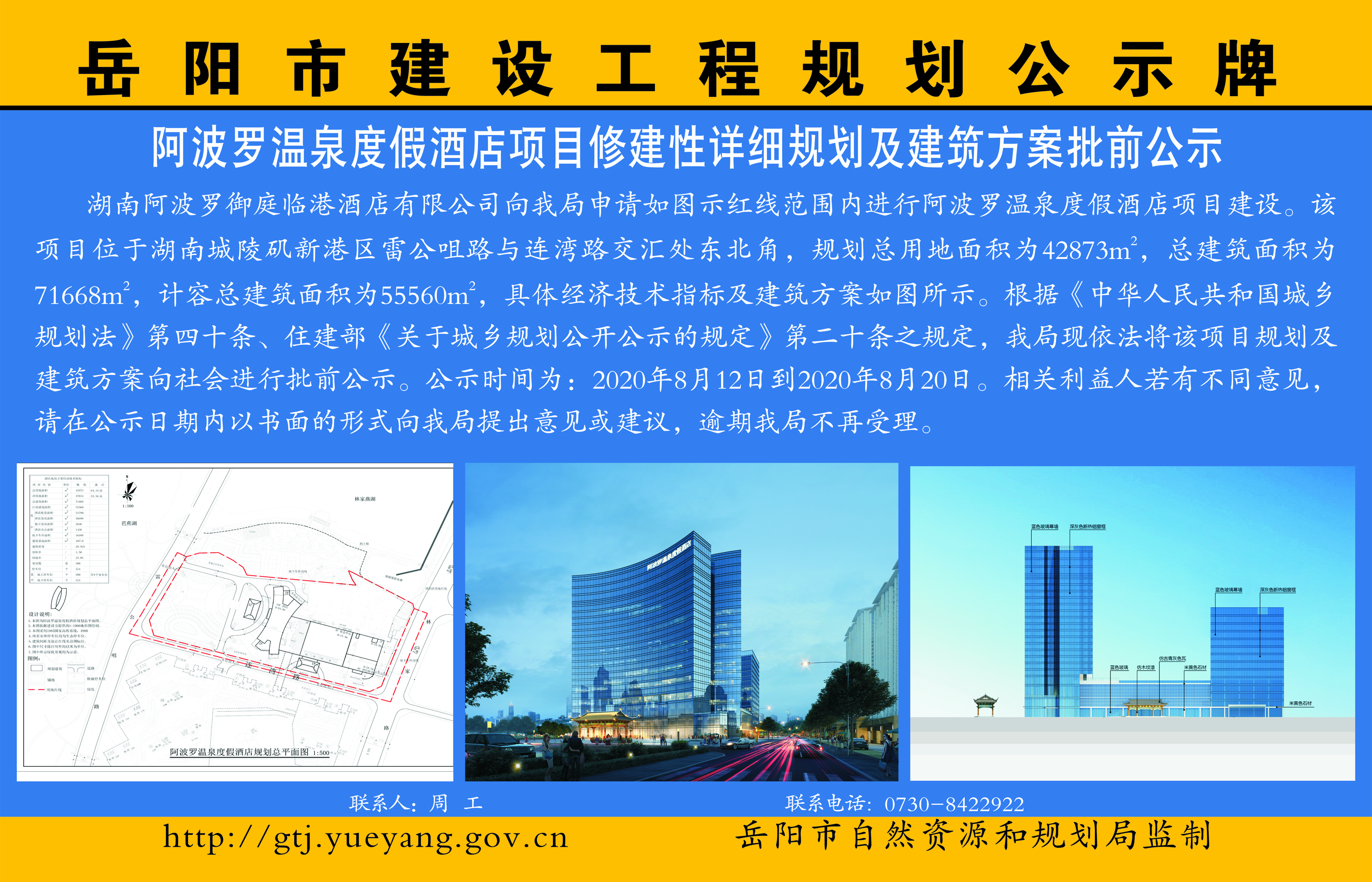 阿波罗温泉度假酒店项目修建性详细规划及建筑方案批前公示