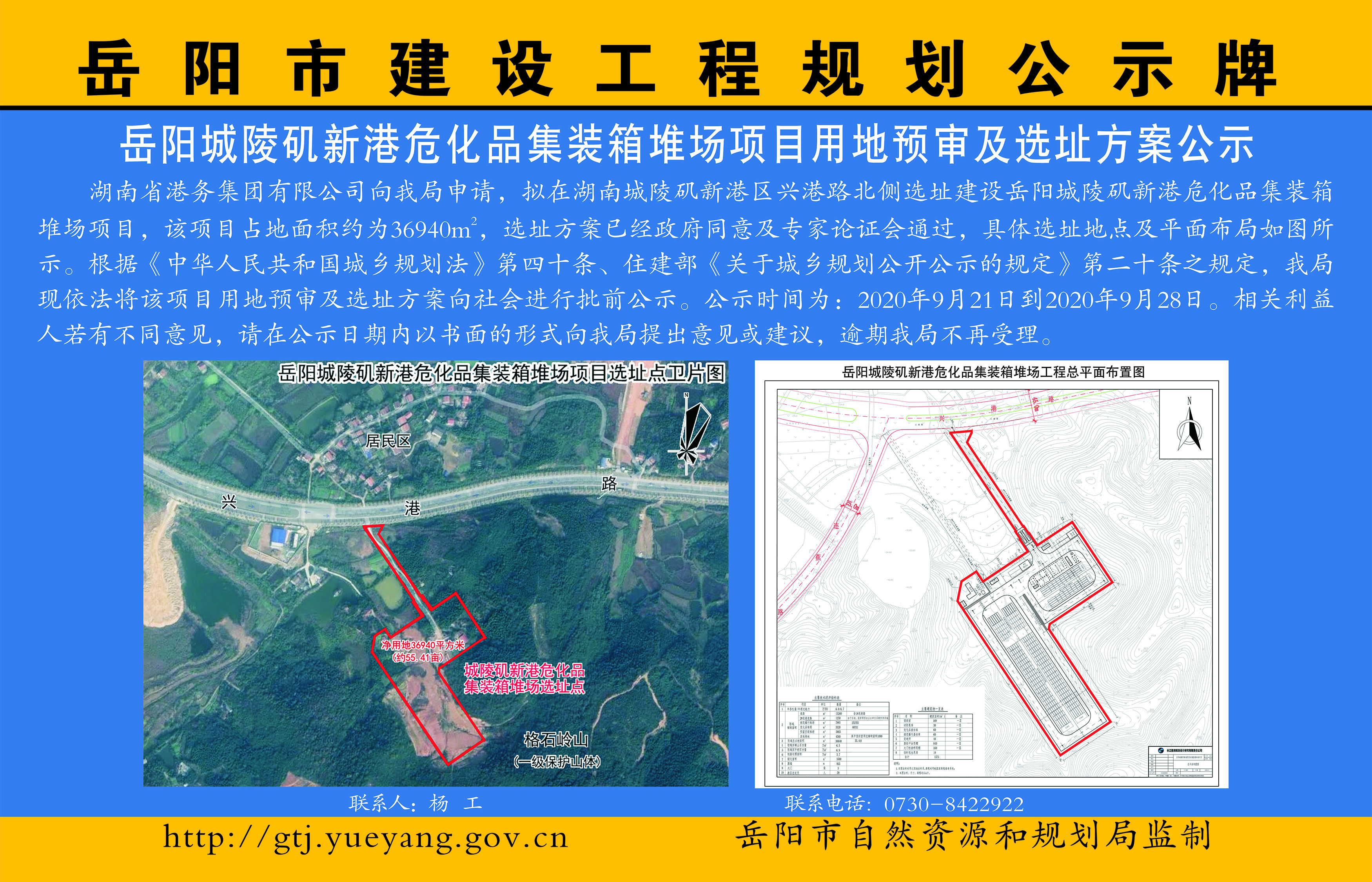 岳阳城陵矶新港危化品集装箱堆场项目用地预审及选址方案公示