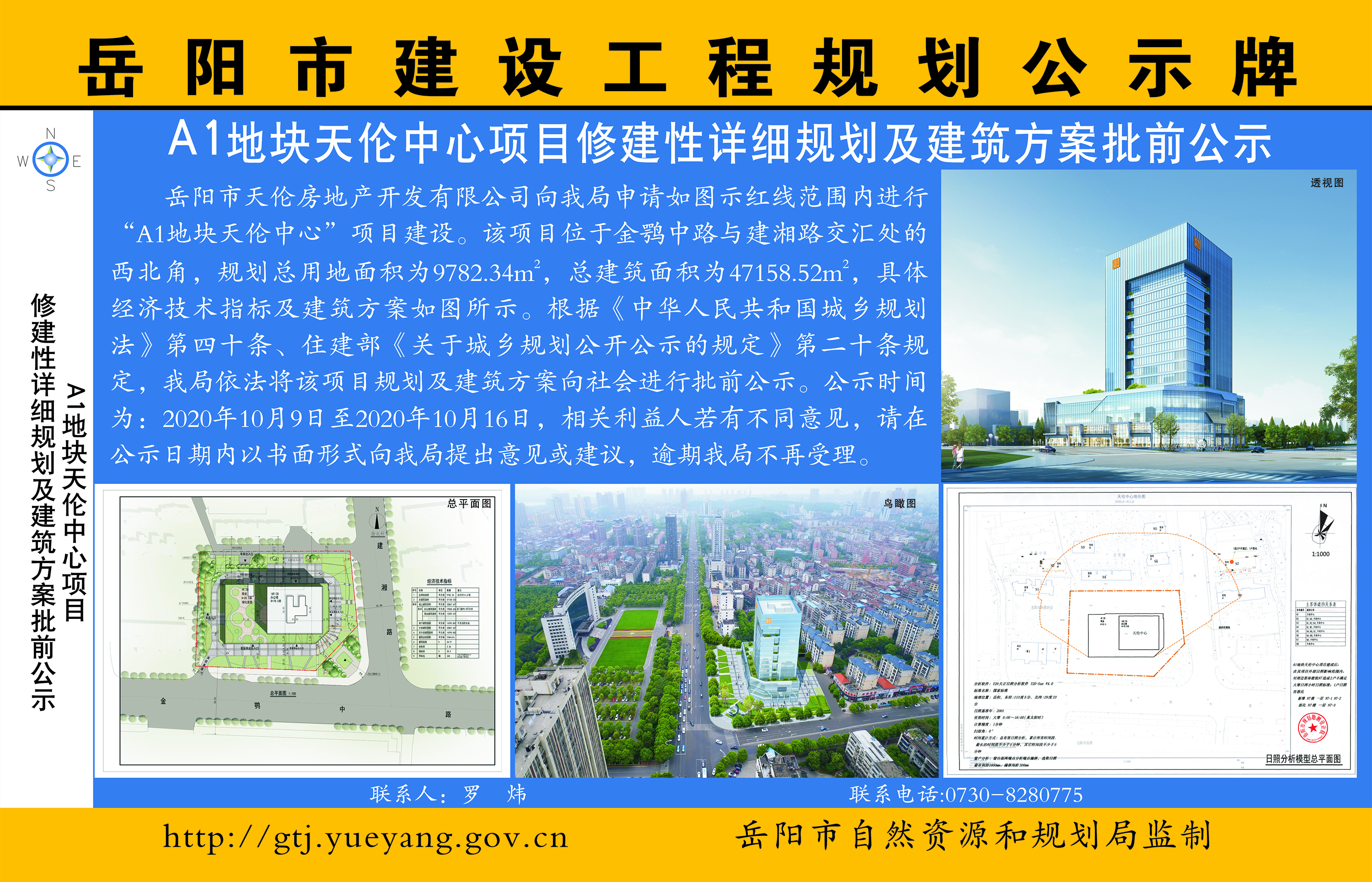 A1地块天伦中心项目修建性详细规划及建筑方案批前公示