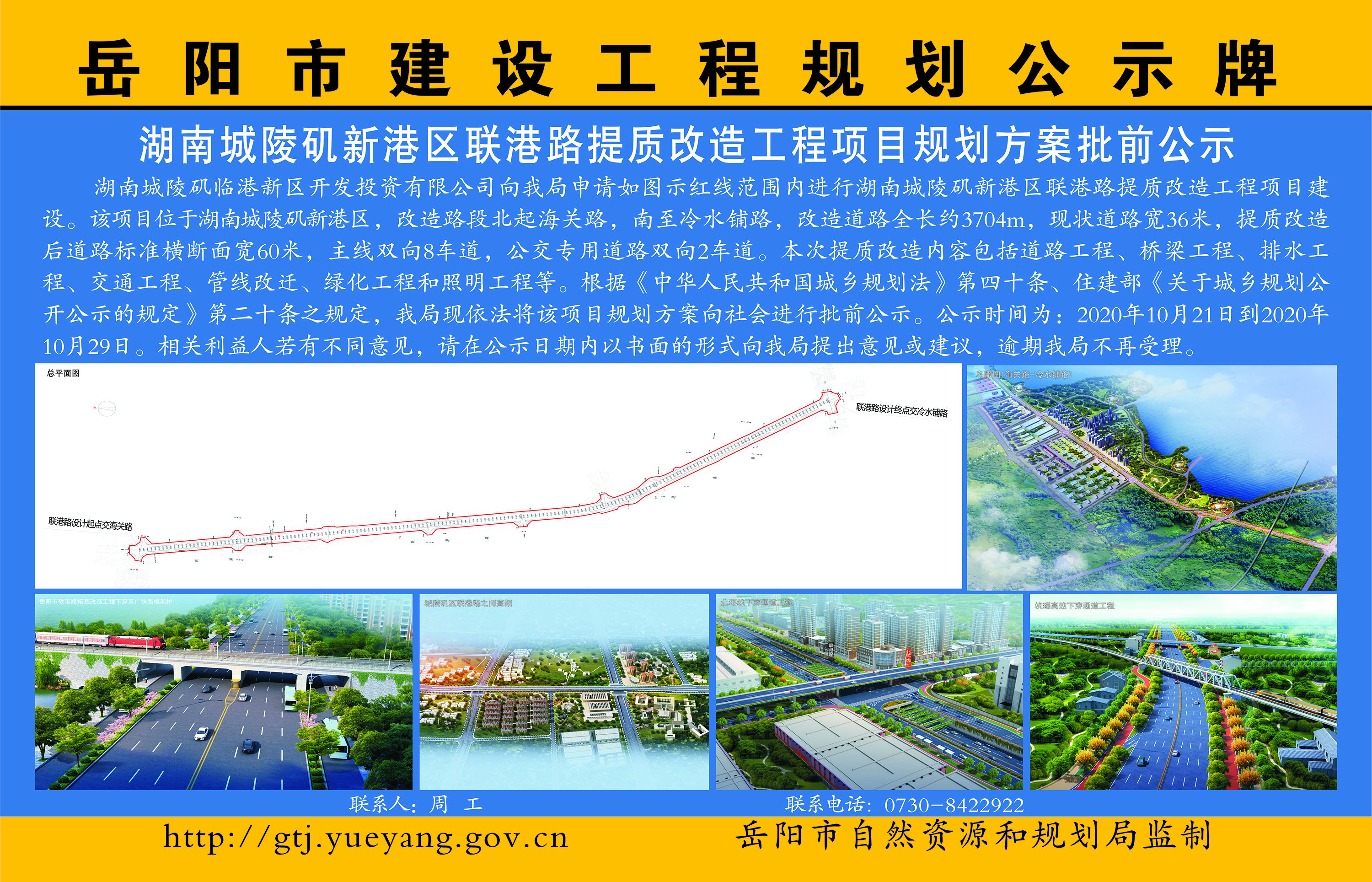 湖南城陵矶新港区联港路提质改造工程项目规划方案批前公示