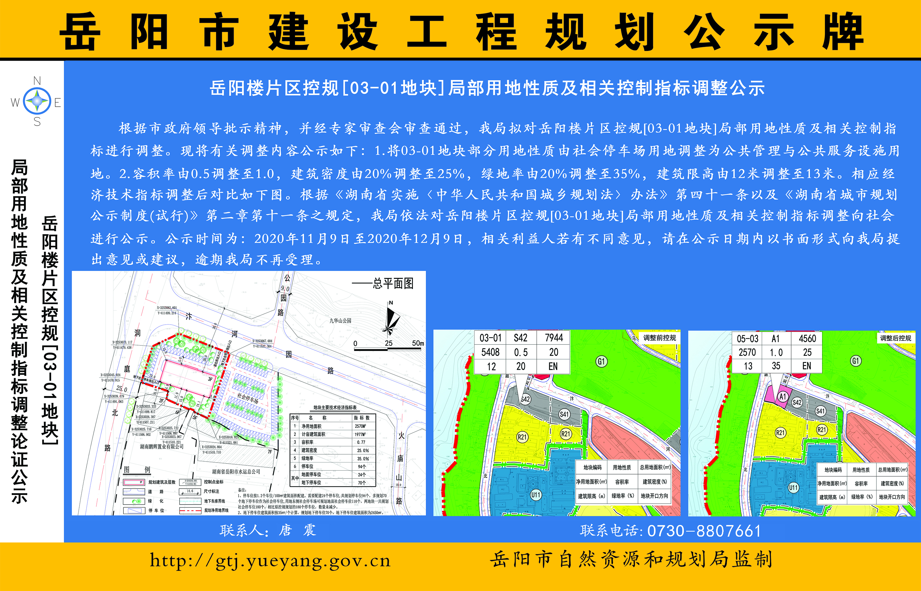 岳阳楼片区控规[03-01地块]局部用地性质及相关控制指标调整公示