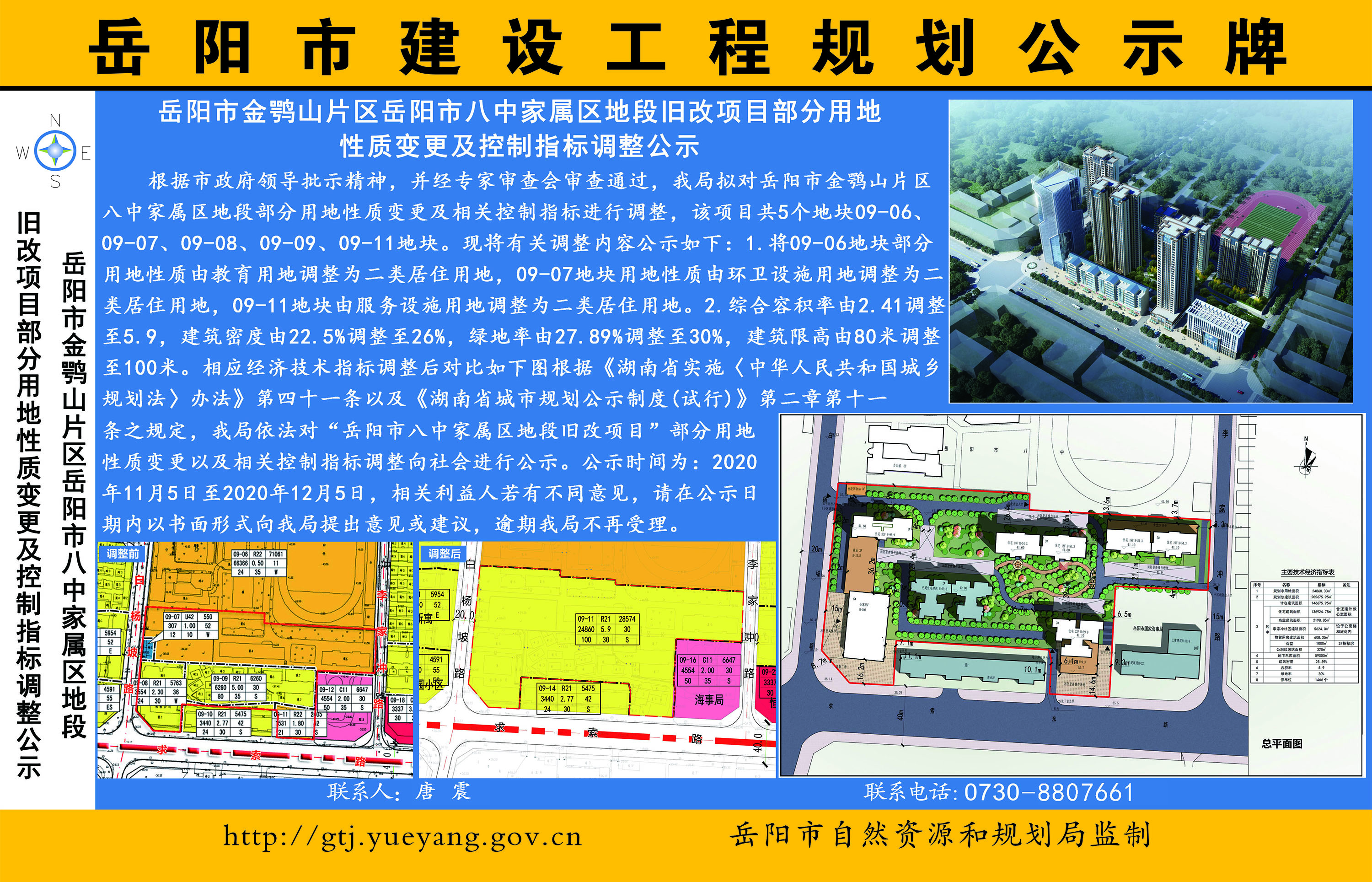 岳阳市金鹗山片区岳阳市八中家属区地段旧改项目部分用地性质变更及控制指标调整公示