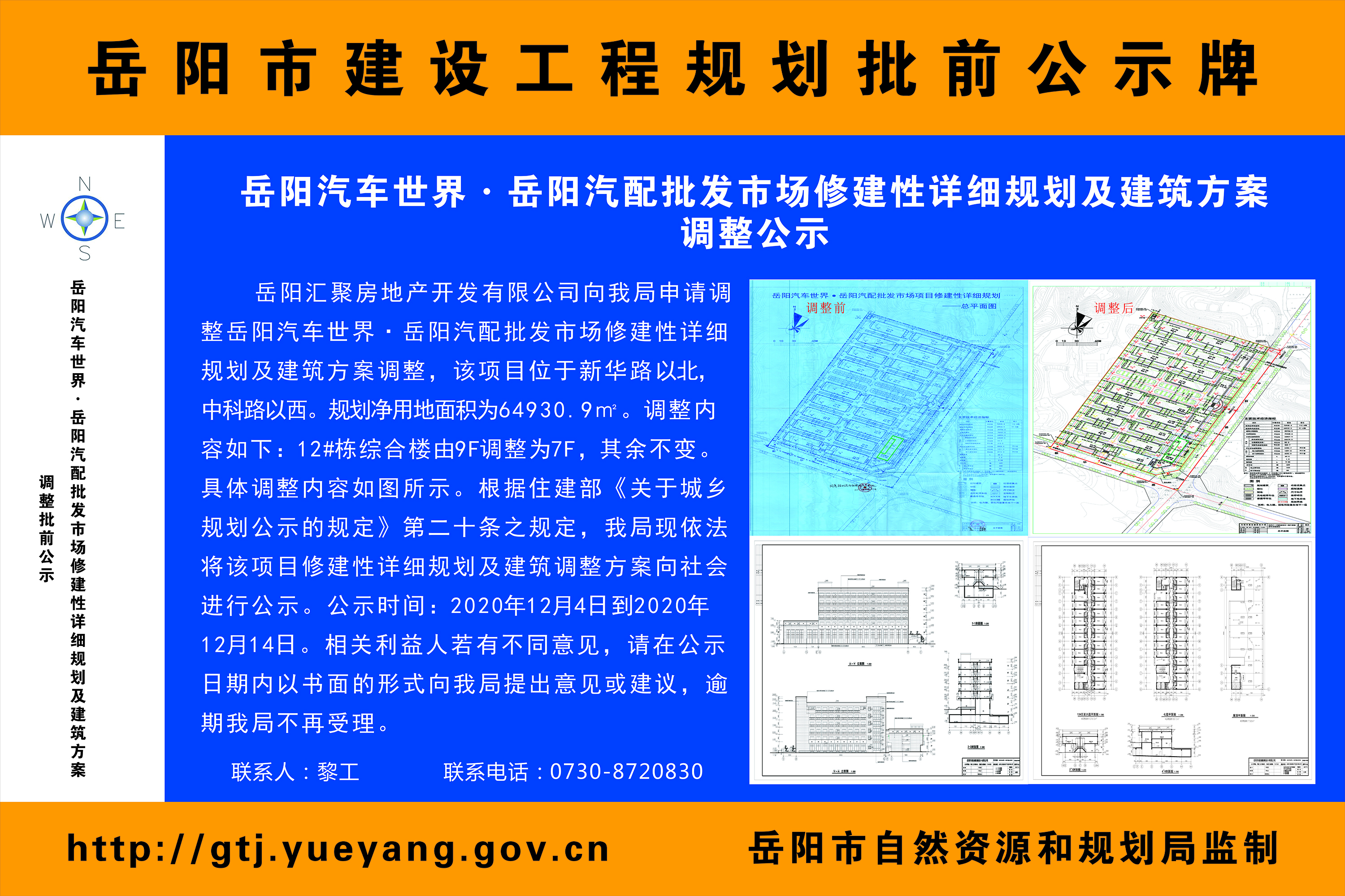 岳阳汽车世界·岳阳汽配批发市场修建性详细规划及建筑方案调整批前公示