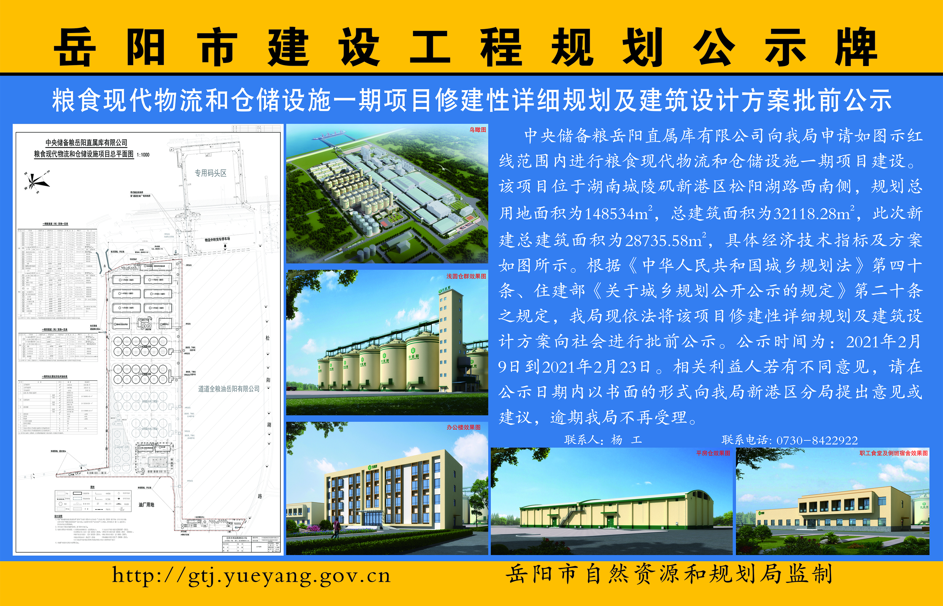 粮食现代物流和仓储设施一期项目修建性详细规划及建筑设计方案批前公示