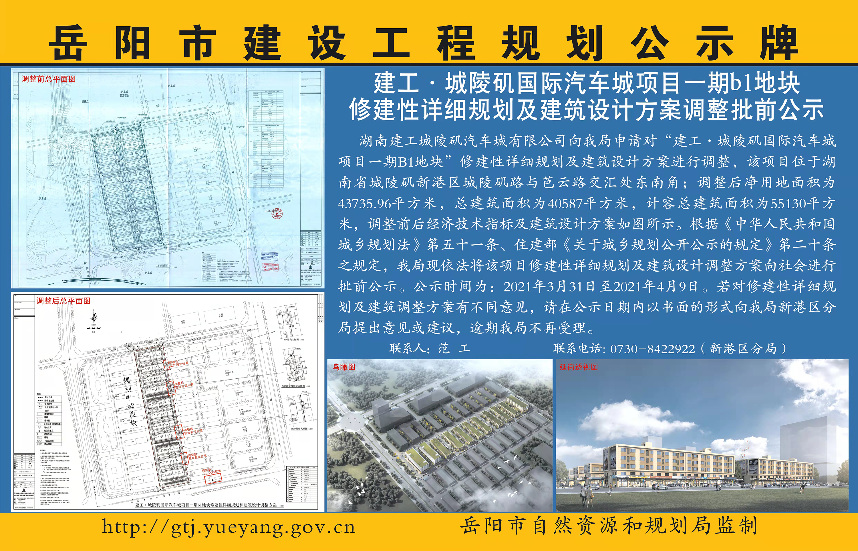 建工·城陵矶国际汽车城项目一期b1地块修建性详细规划及建筑设计方案调整批前公示
