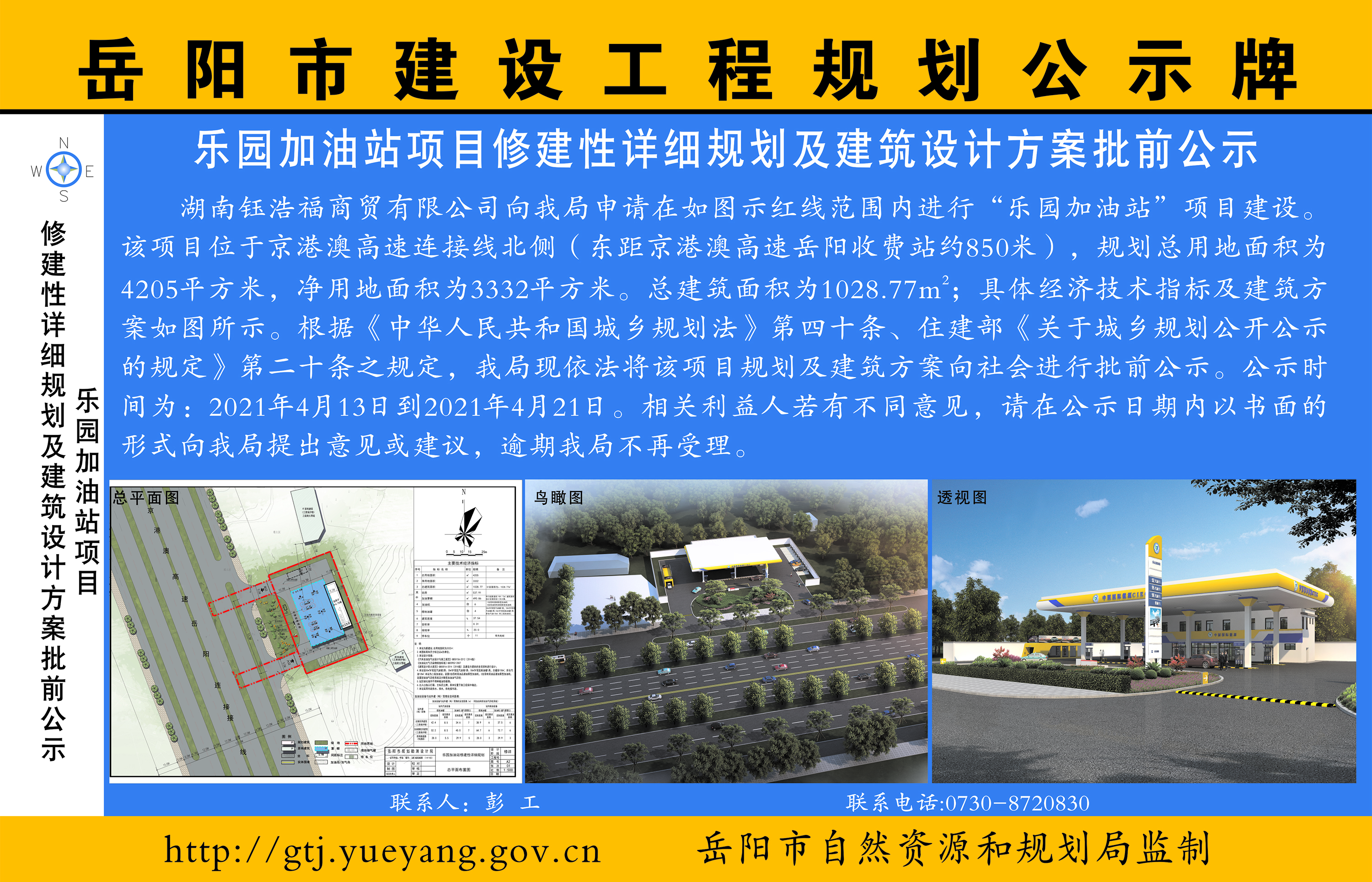 湖南钰浩福商贸有限公司“乐园加油站”项目修建性详细规划及建筑设计方案批前公示