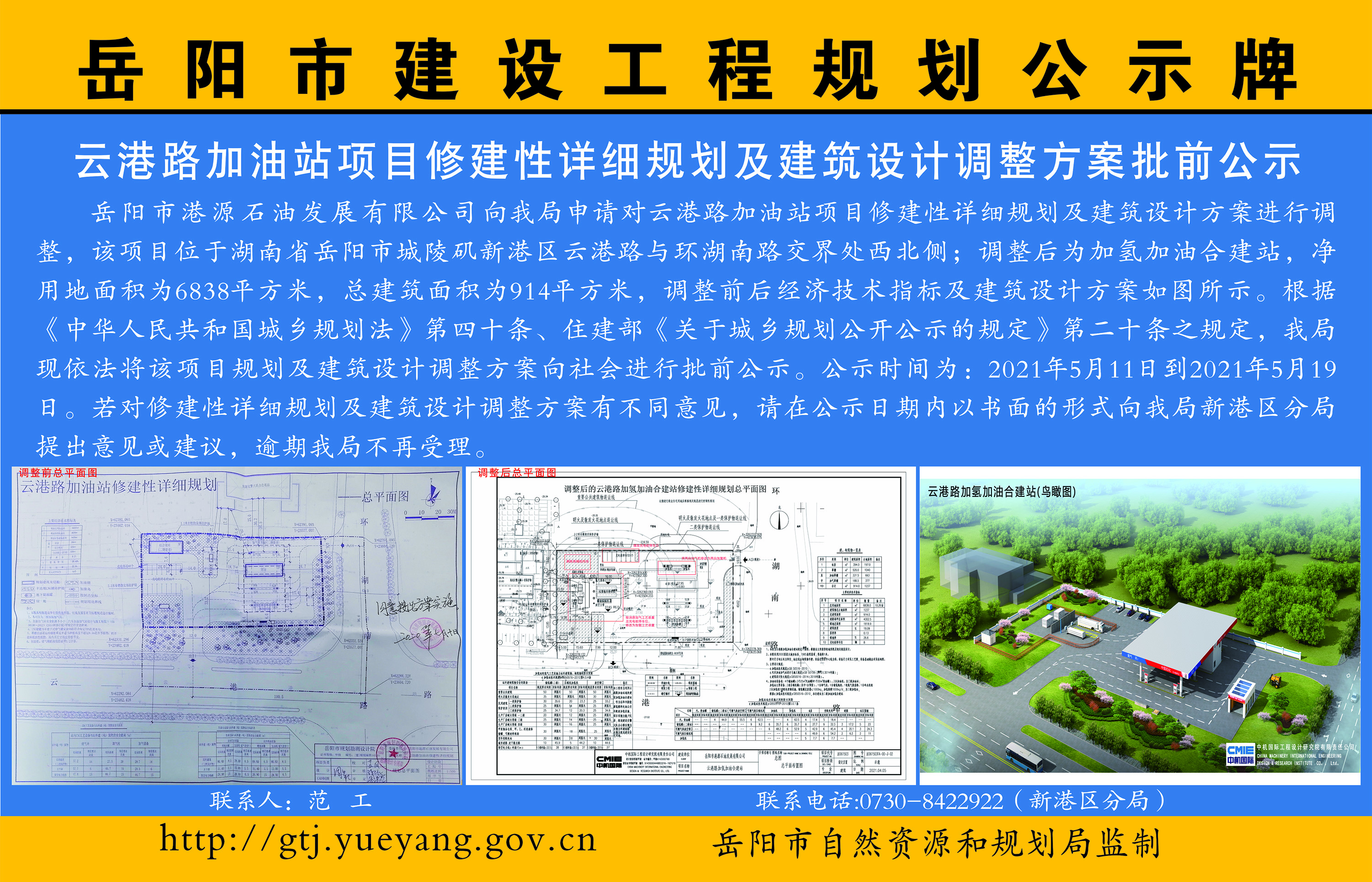 云港路加油站项目修建性详细规划及建筑设计调整方案批前公示