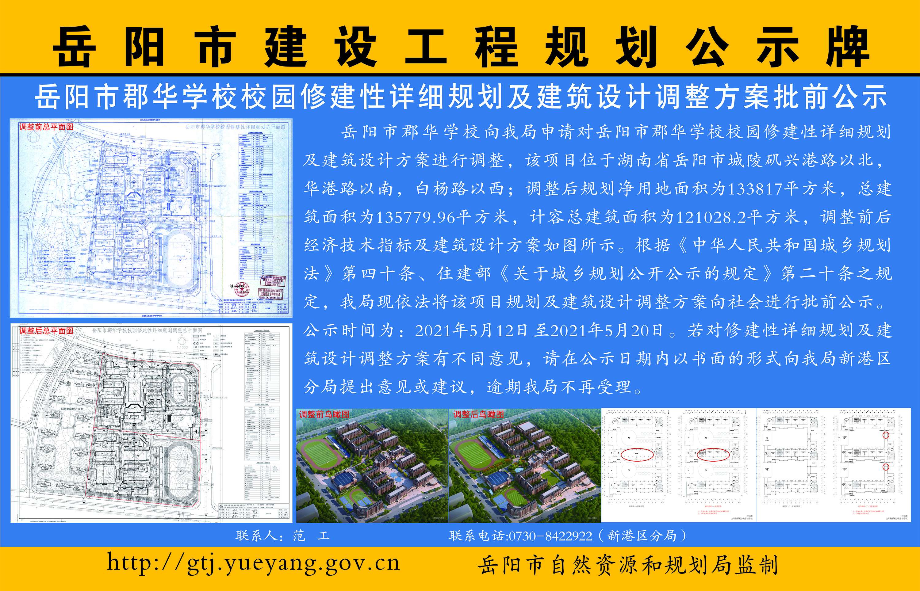 岳阳市郡华学校校园项目修建性详细规划及建筑设计调整方案批前公示