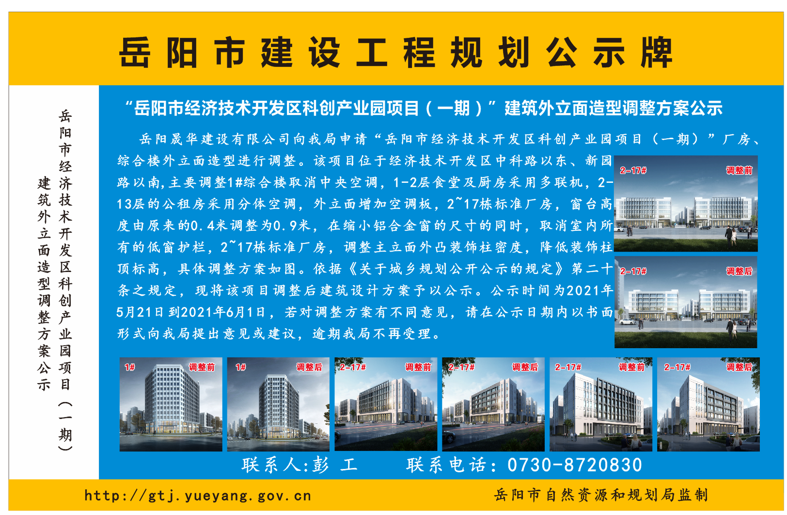 岳阳市经济技术开发区科创产业园项目(一期)建筑外立面造型调整方案公示