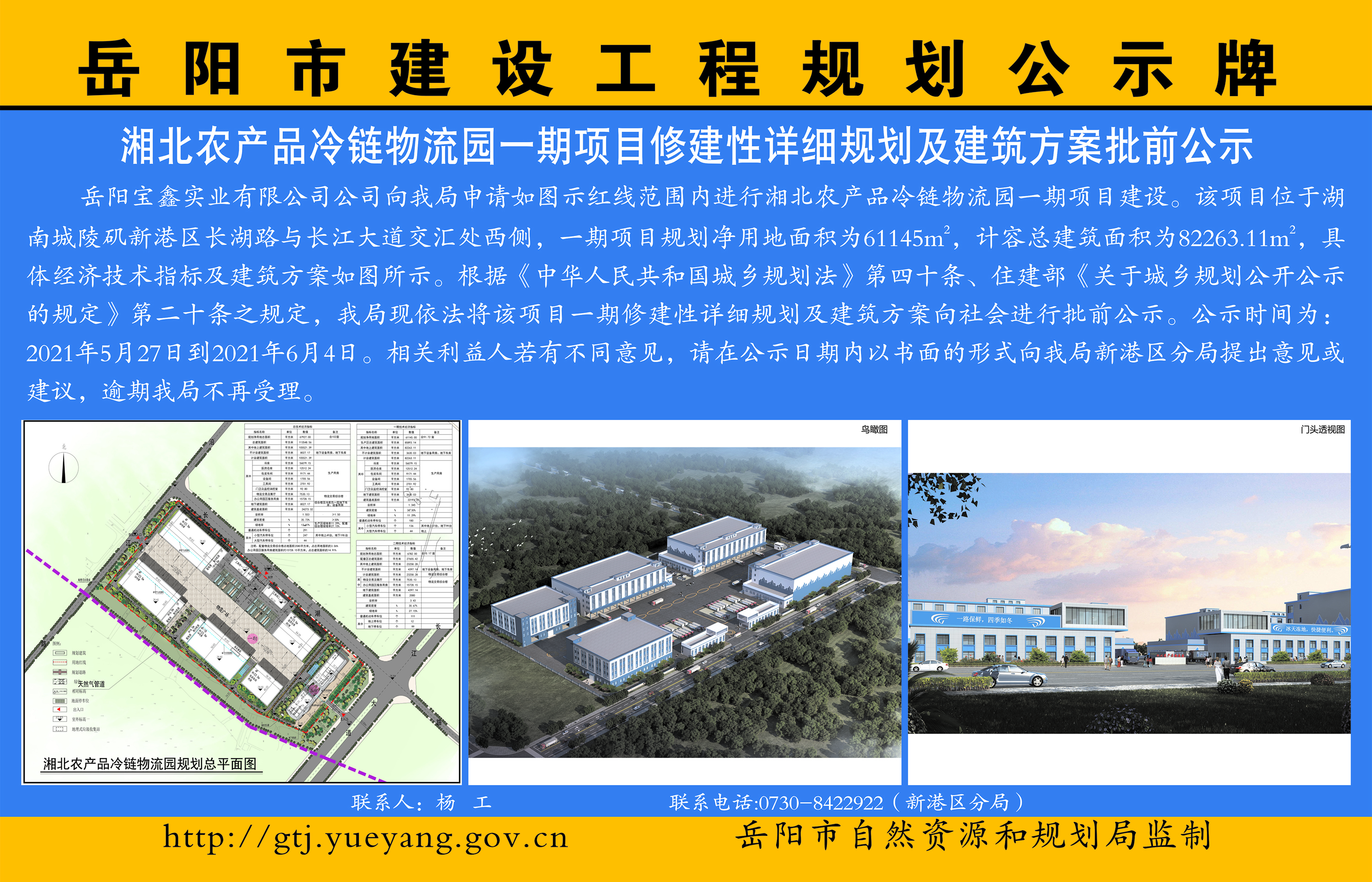 湘北农产品冷链物流园一期项目修建性详细规划及建筑方案批前公示