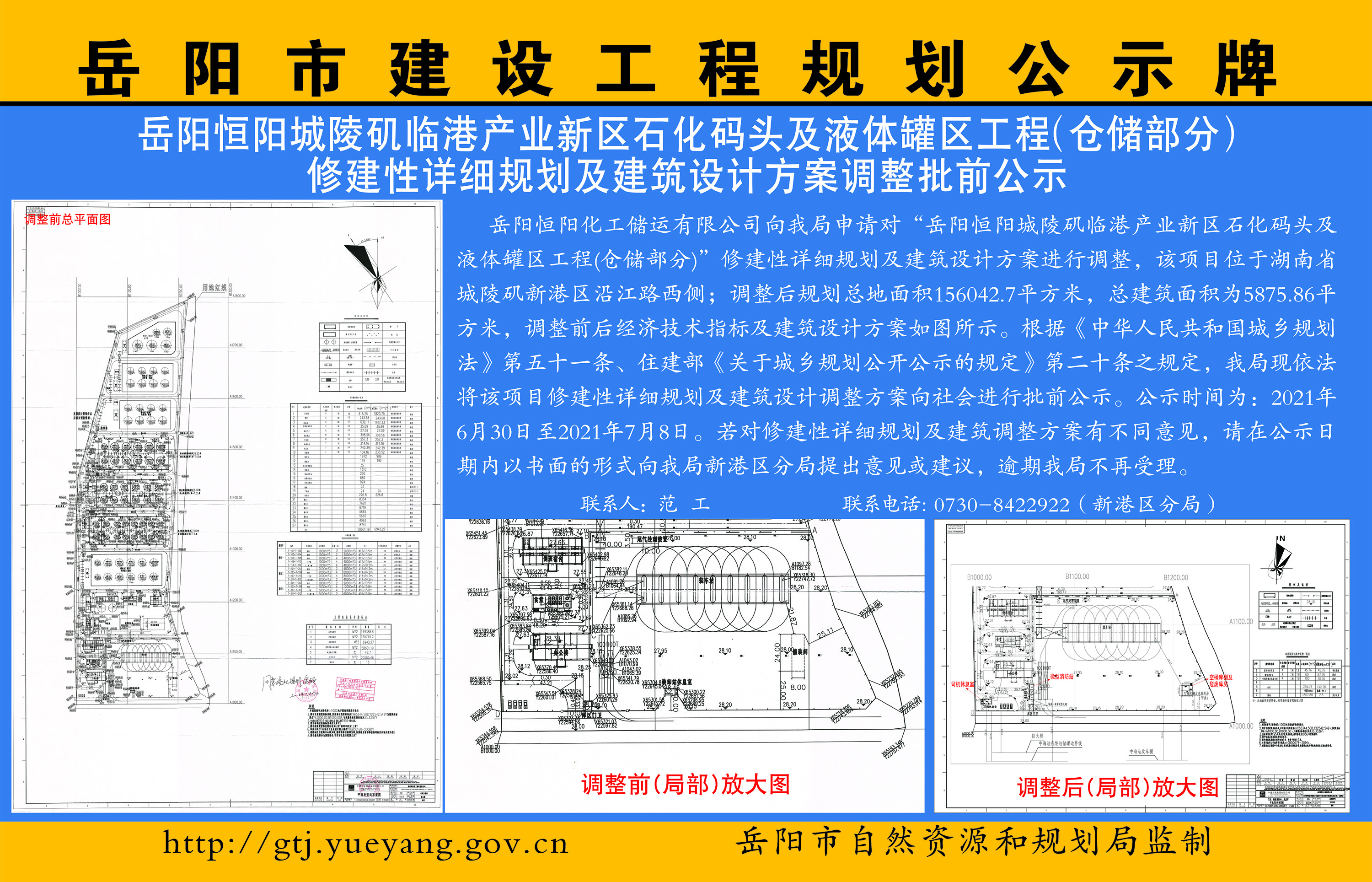 岳阳恒阳城陵矶临港产业新区石化码头及液体罐区工程(仓储部分)修建性详细规划及建筑设计方案调整批前公示