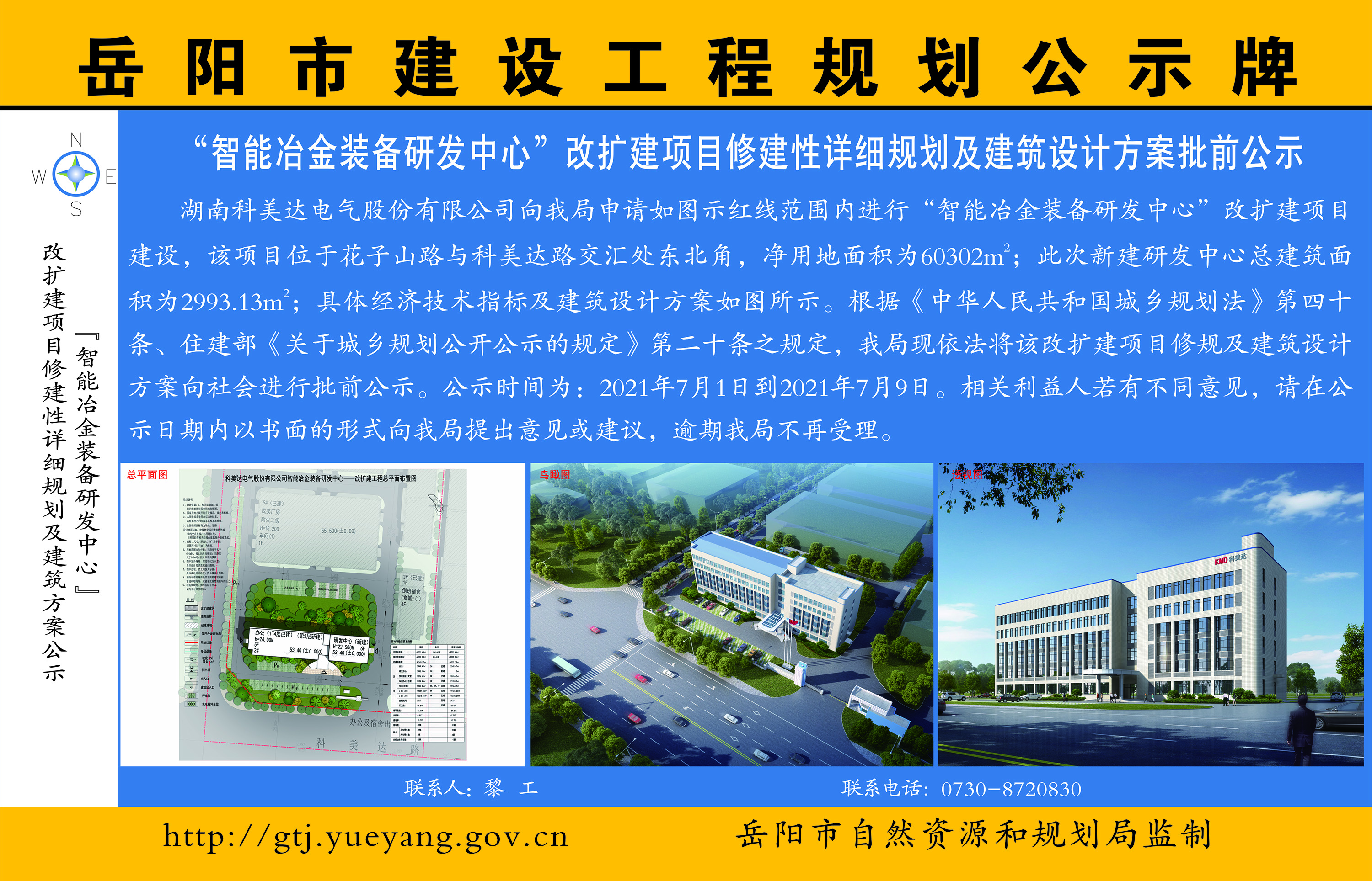 “智能冶金装备研发中心”改扩建项目修建性详细规划及建筑设计方案批前公示