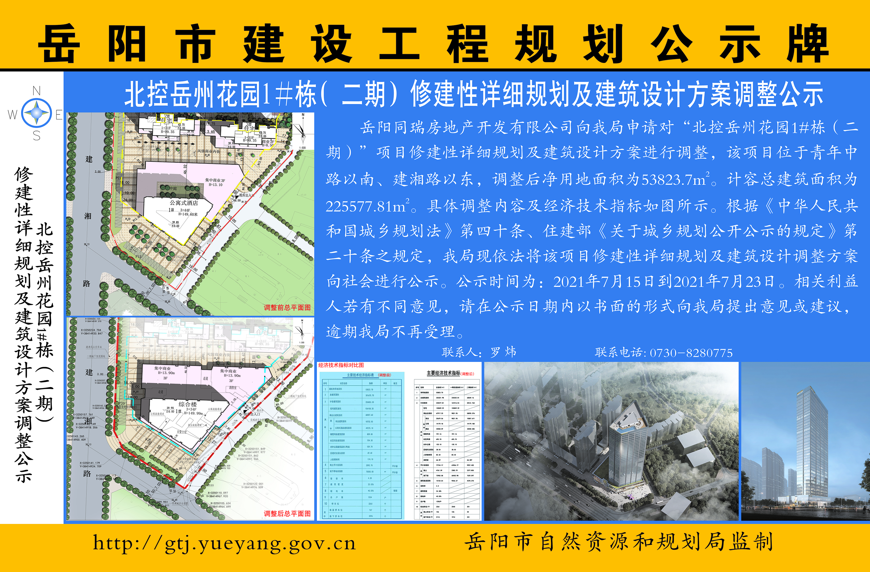 北控岳州花园1#栋(二期)修建性详细规划及建筑设计方案调整公示