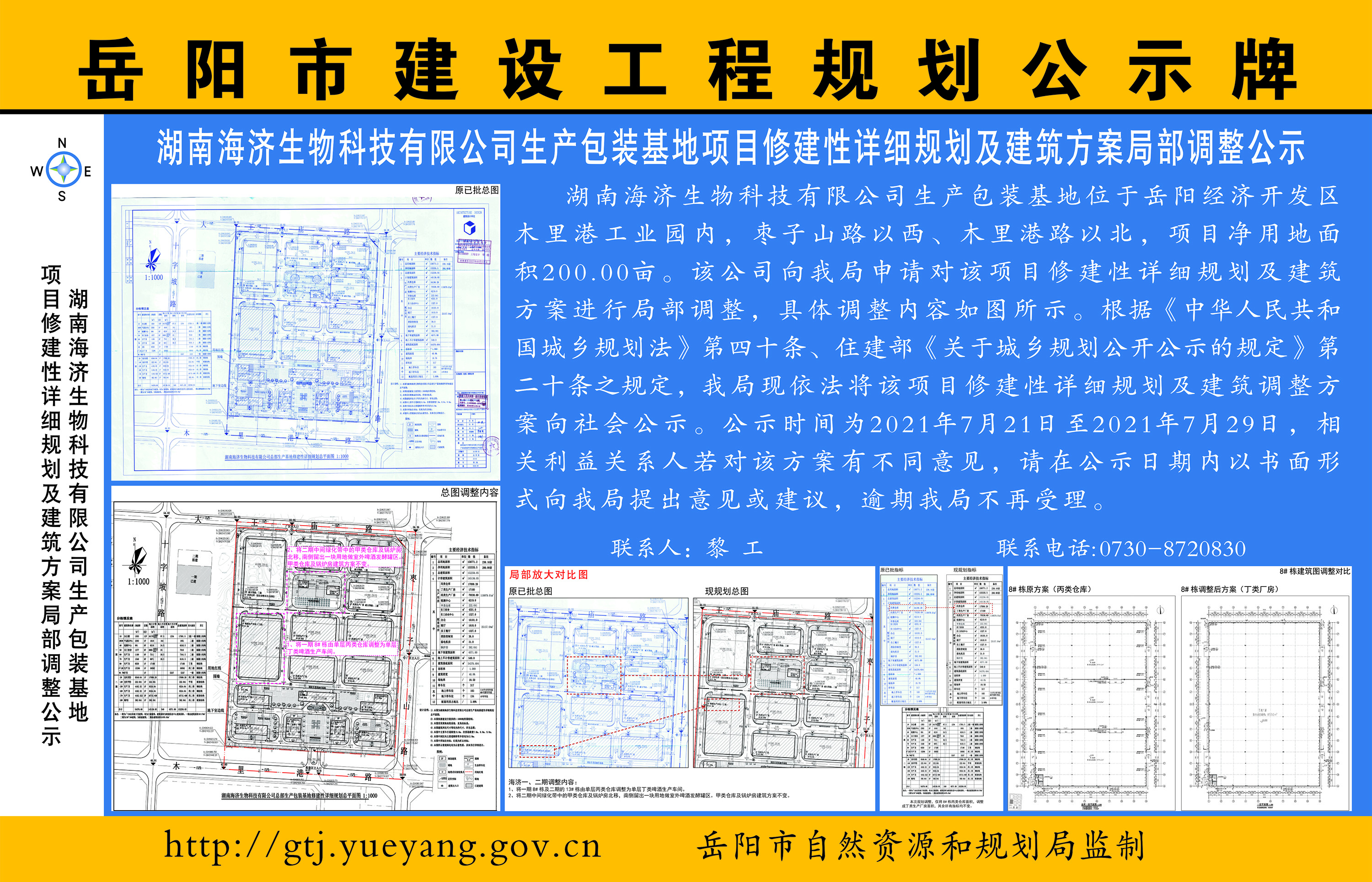湖南海济生物科技有限公司生产包装基地修建性详细规划及建筑方案局部调整公示