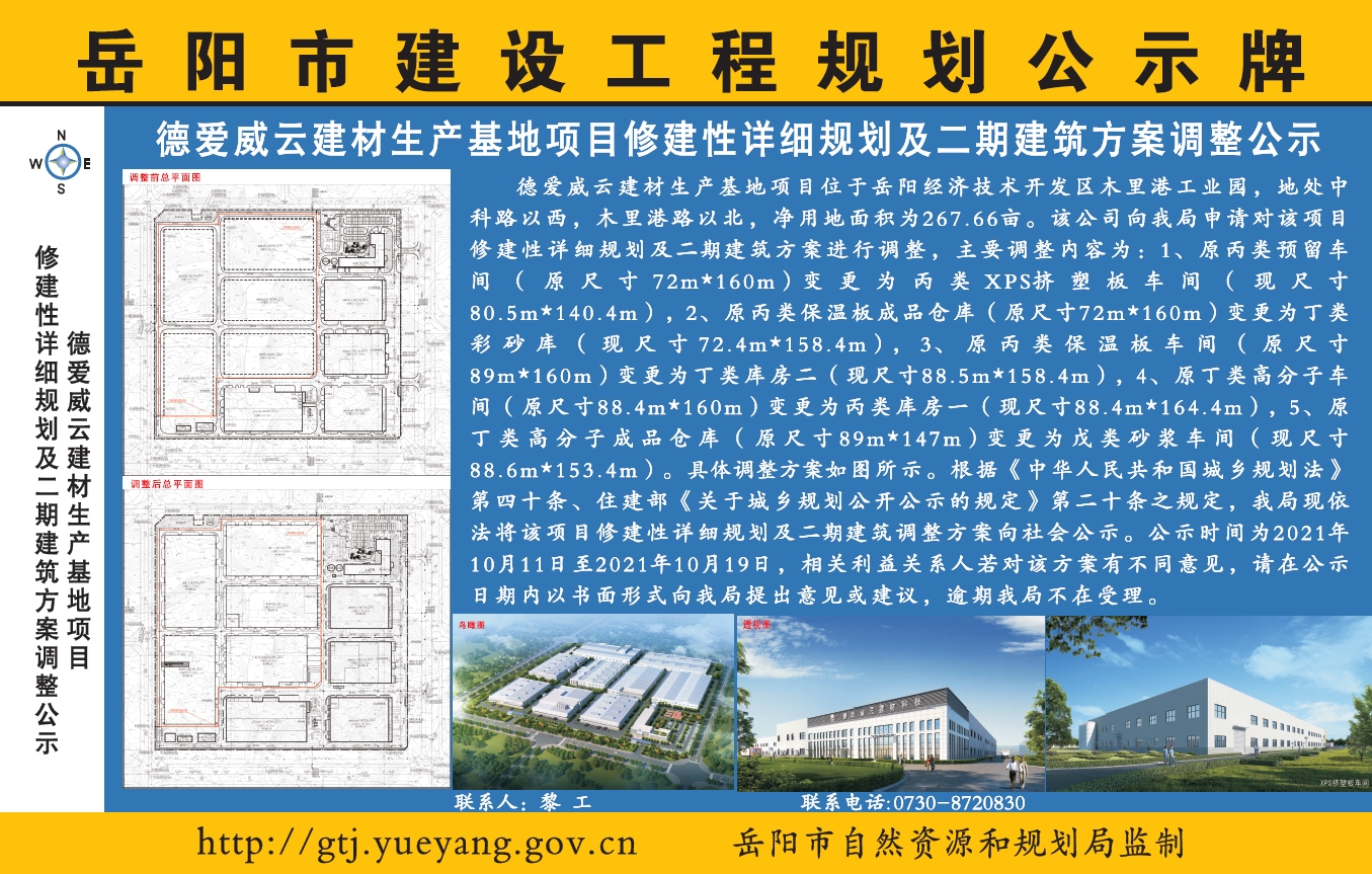德爱威云建材生产基地项目修建性详细规划及二期建筑方案调整公示