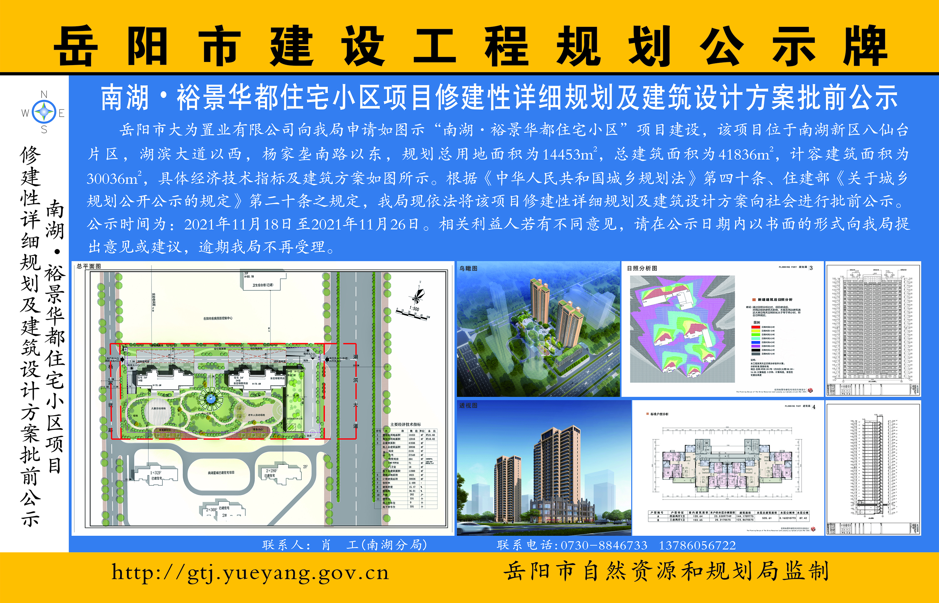 南湖·裕景华都住宅小区项目修建性详细规划及建筑设计方案批前公示