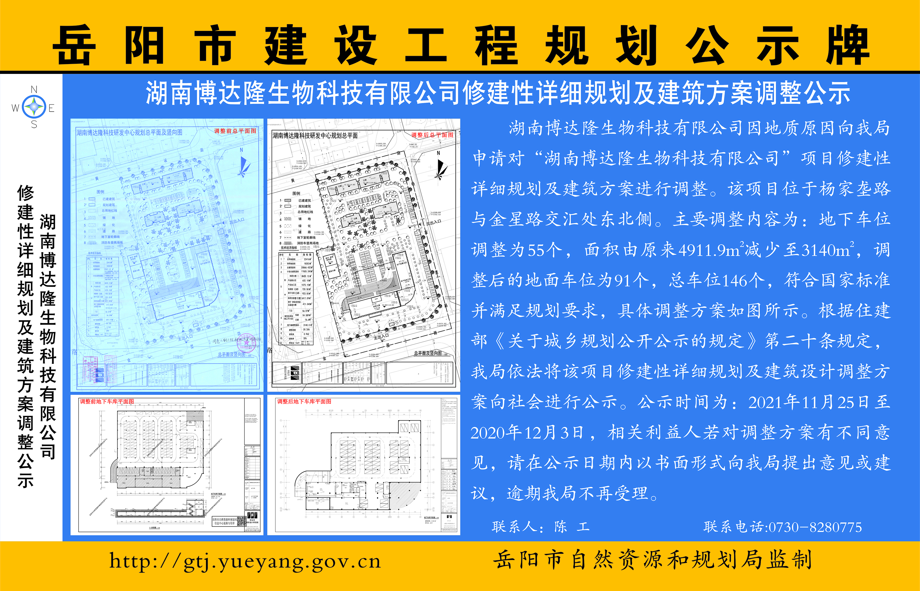 湖南博达隆生物科技有限公司修建性详细规划及建筑方案调整公示