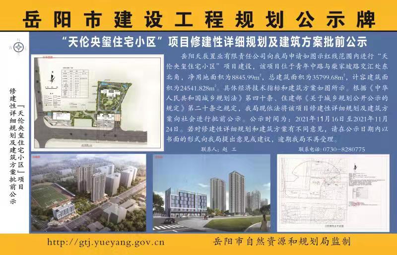 天伦央玺住宅小区项目修建性详细规划及建筑方案批前公示