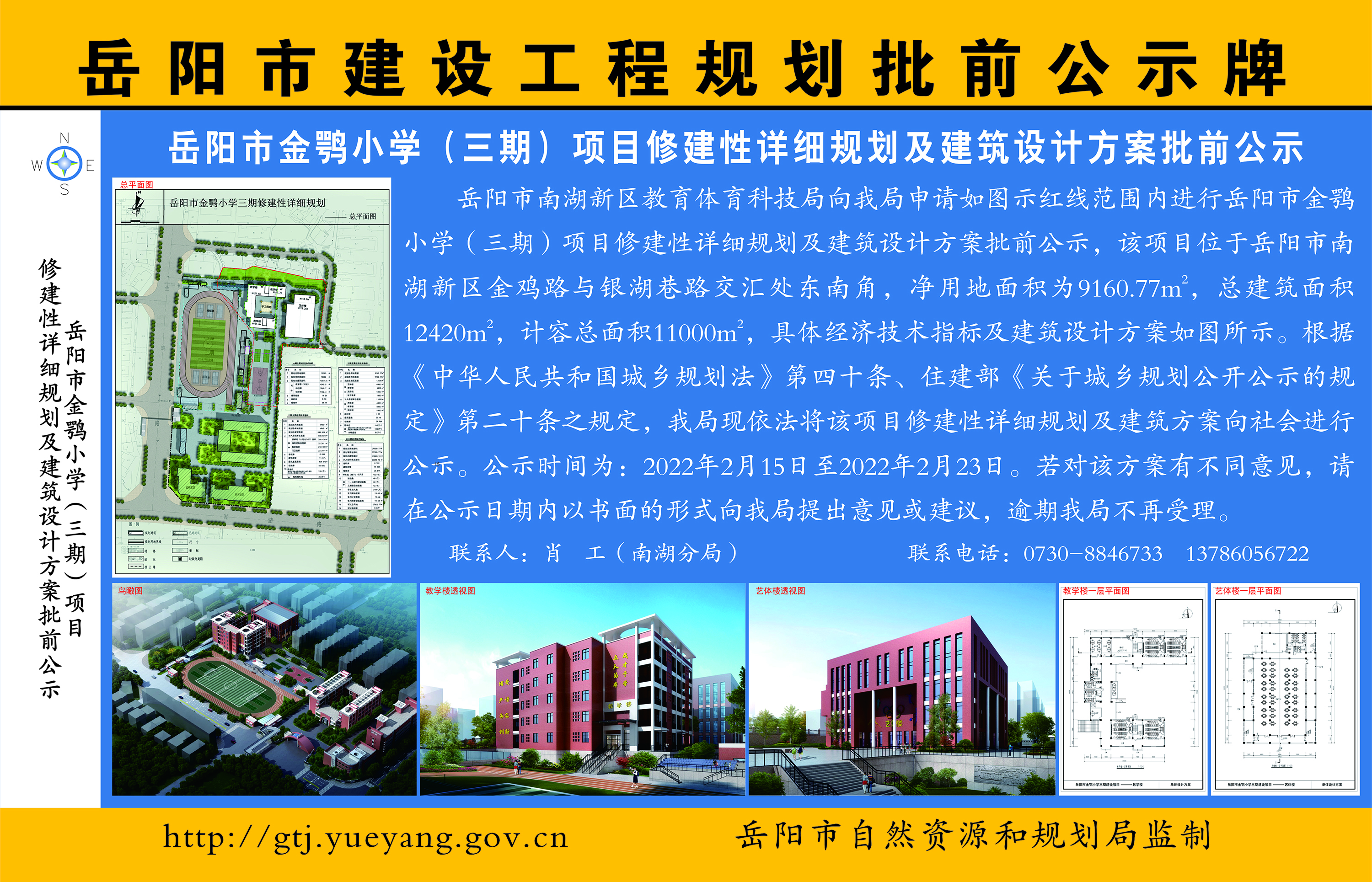 岳阳市金鹗小学(三期)建设项目修建性详细规划及建筑设计方案批前公示