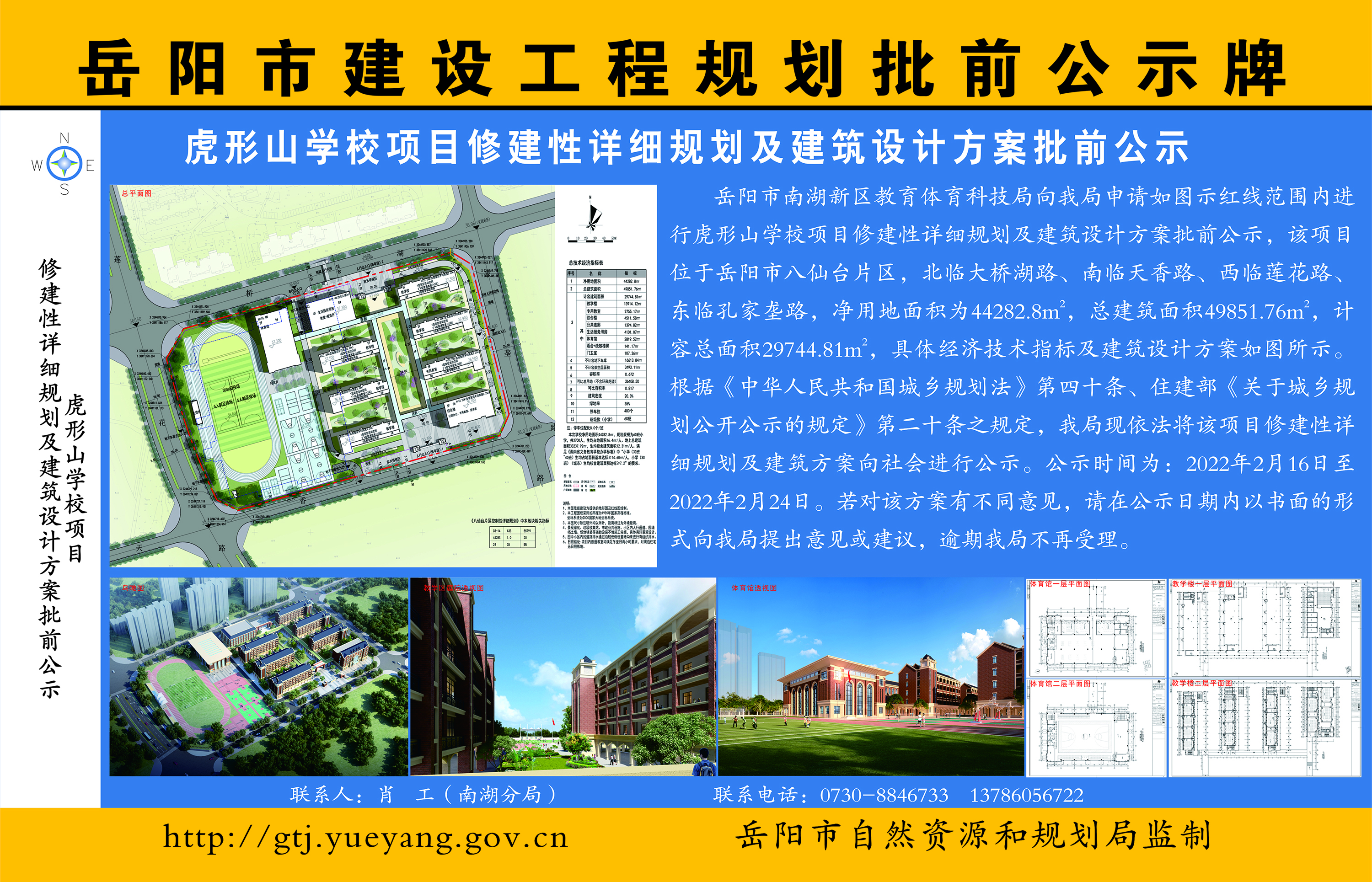 虎形山学校项目修建性详细规划及建筑设计方案批前公示