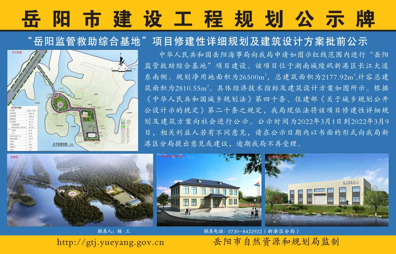 岳阳监管救助综合基地项目修建性详细规划及建筑设计方案批前公示
