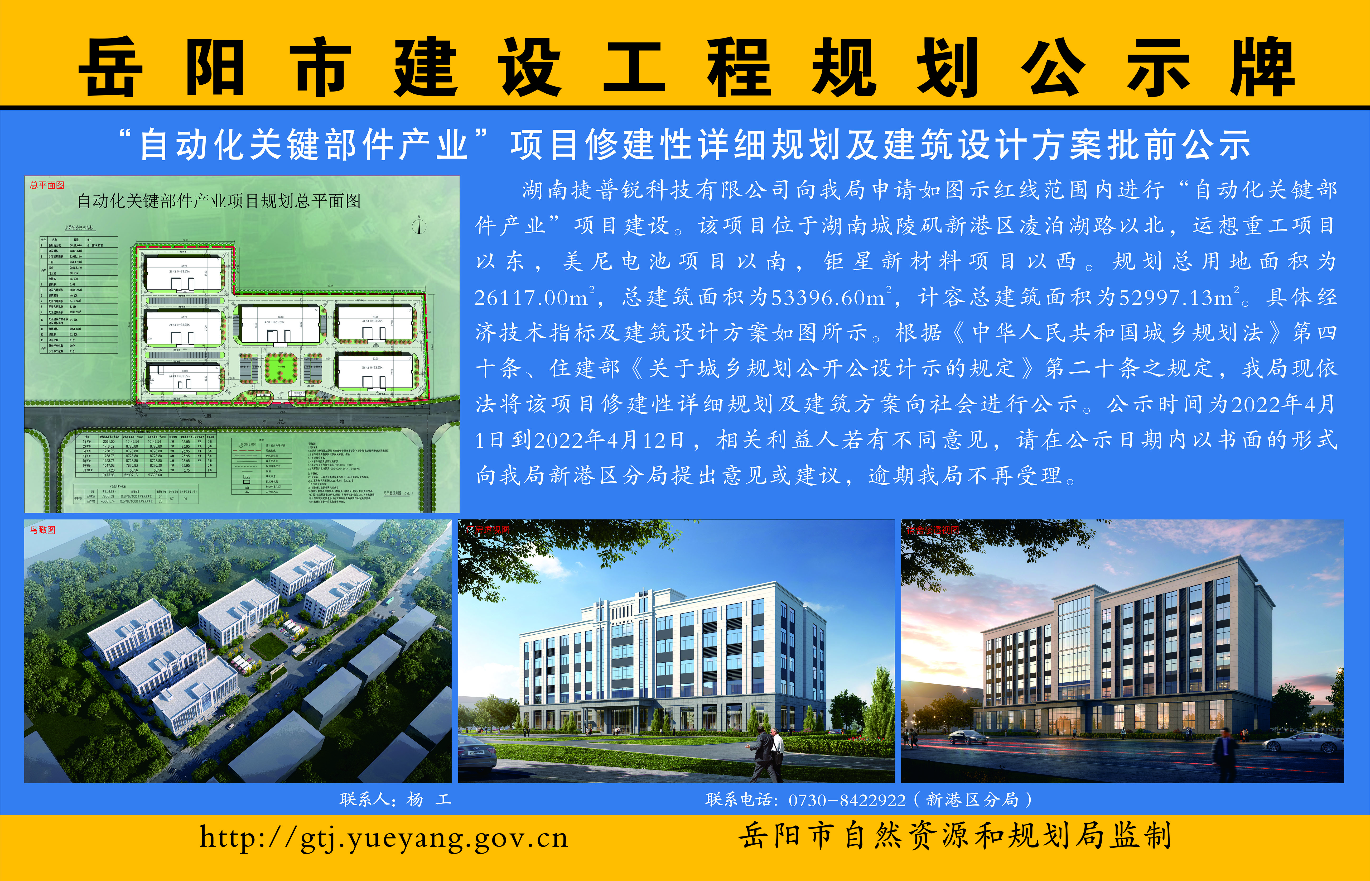 自动化关键部件产业项目修建性详细规划及建筑设计方案批前公示