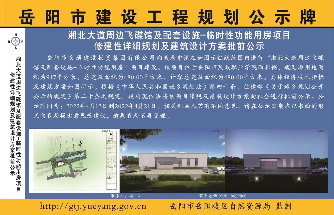 湘北大道周边飞碟馆及配套设施临时性功能用房项目修建性详细规划及建筑设计方案批前公示