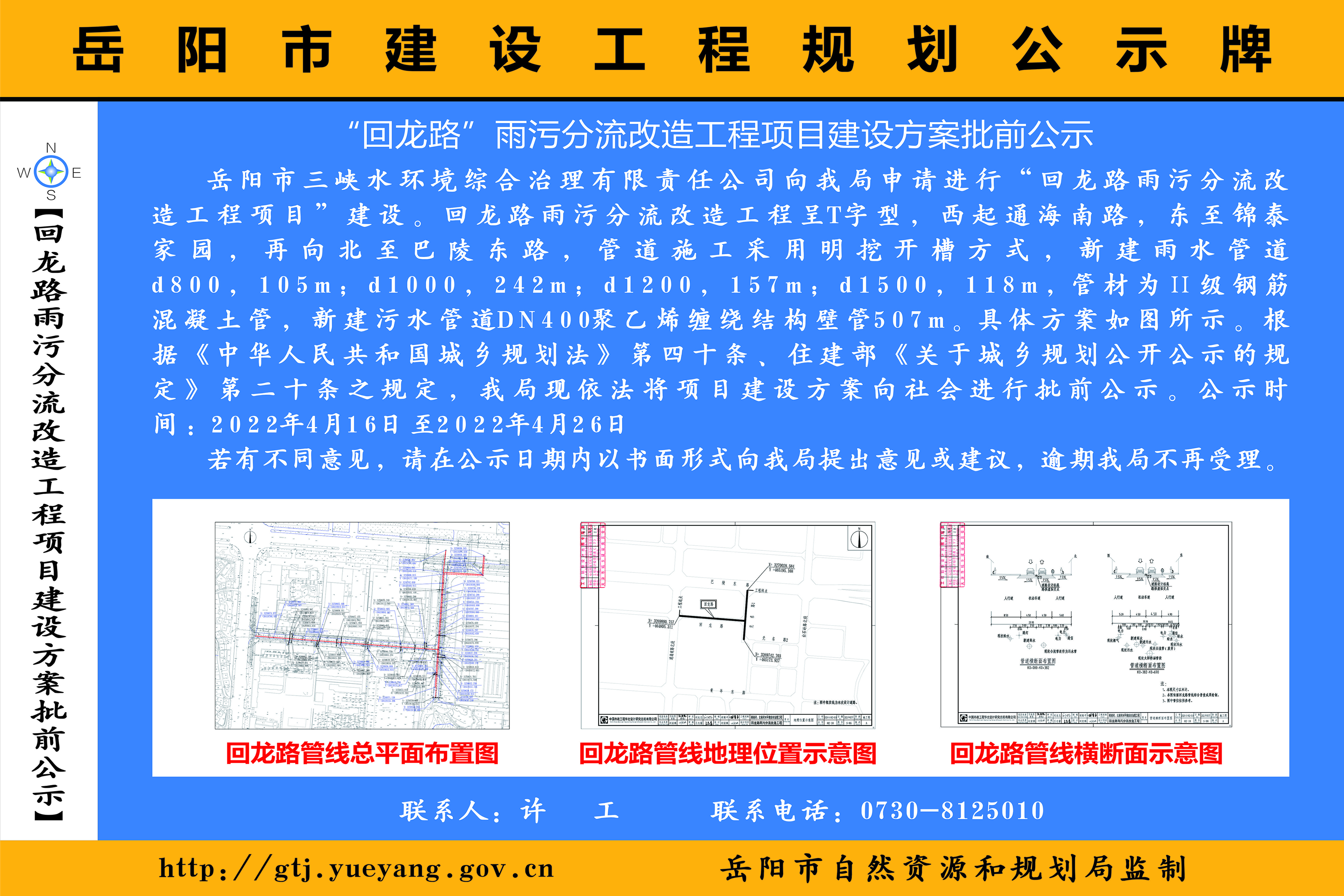“回龙路”雨污分流改造工程项目建设方案批前公示