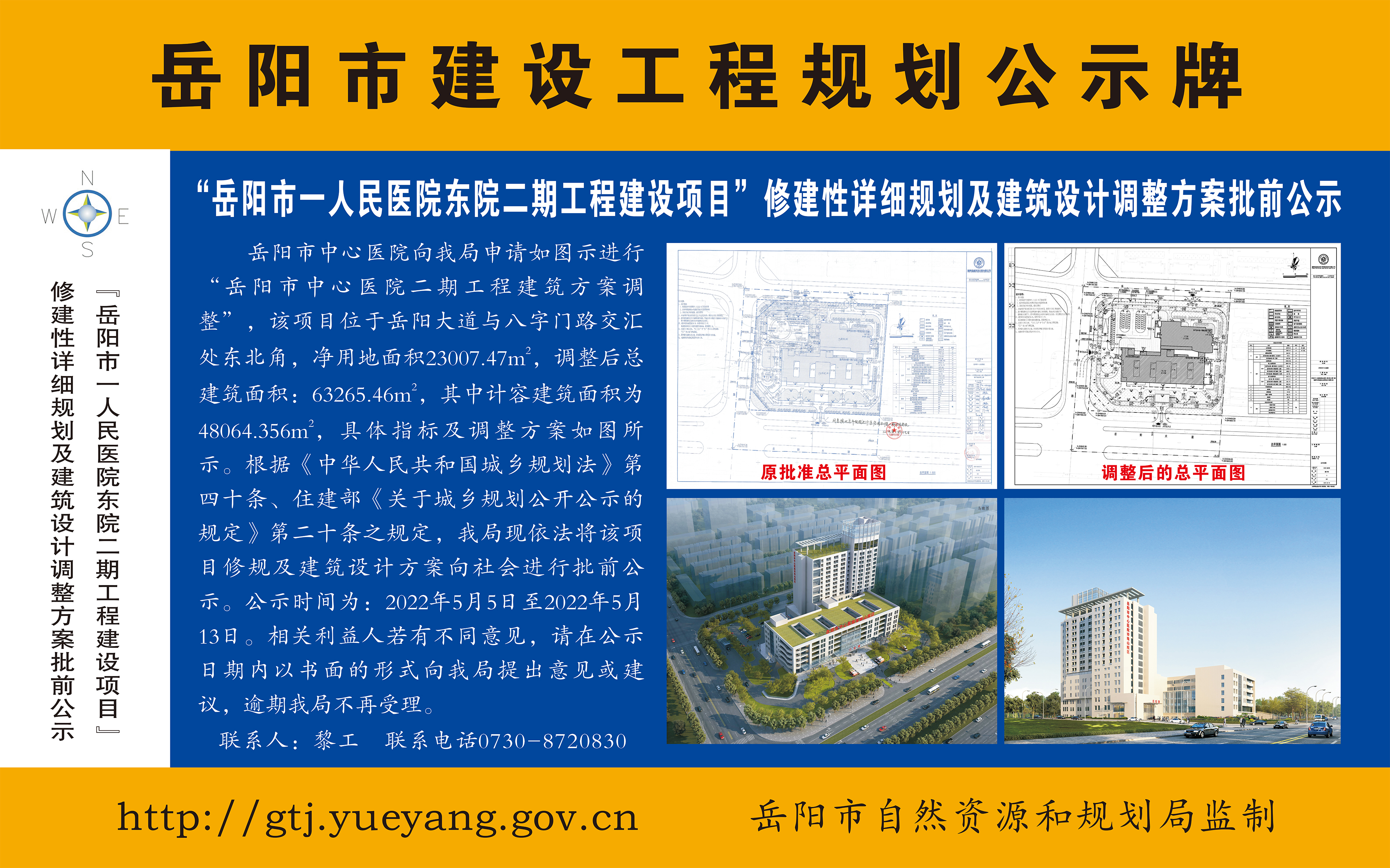 岳阳市一人民医院东院二期工程建设项目修建性详细规划及建筑设计调整方案批前公示