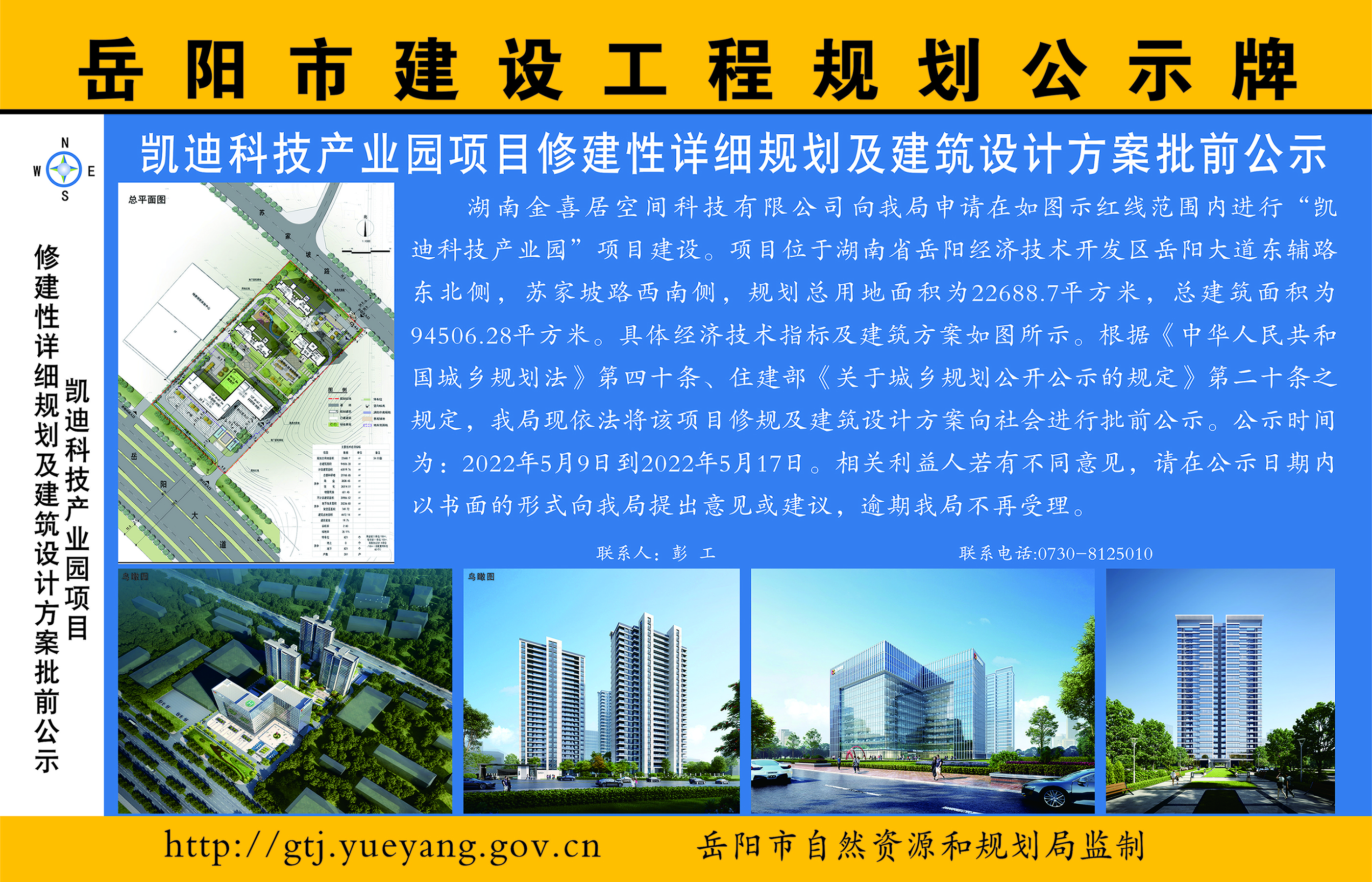 湖南金喜居空间科技有限公司“岳阳建设科技产业园”项目修建性详细规划及建筑设计方案批前公示