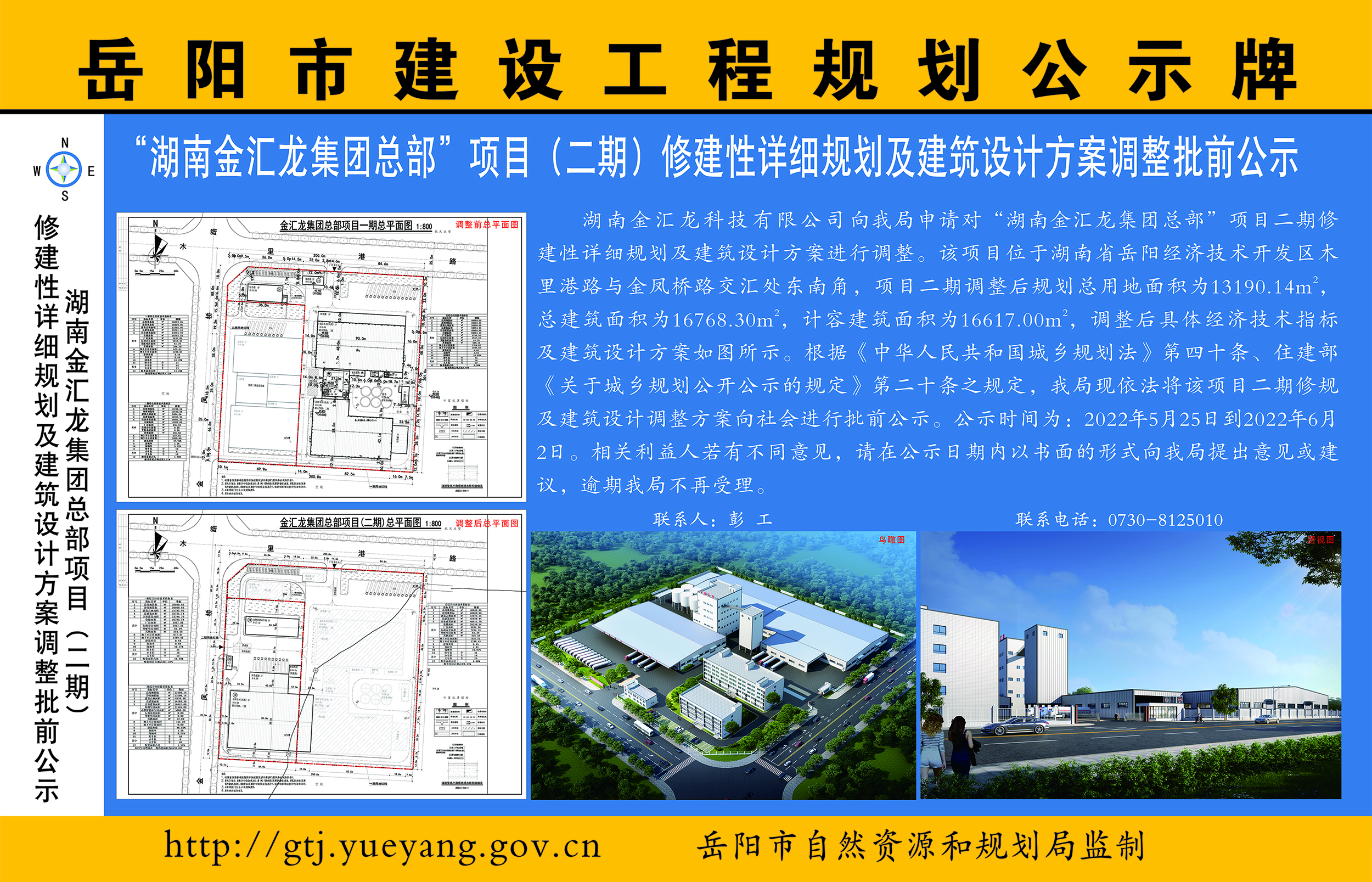 “湖南金汇龙集团总部”项目(二期)修建性详细规划及建筑设计方案调整批前公示