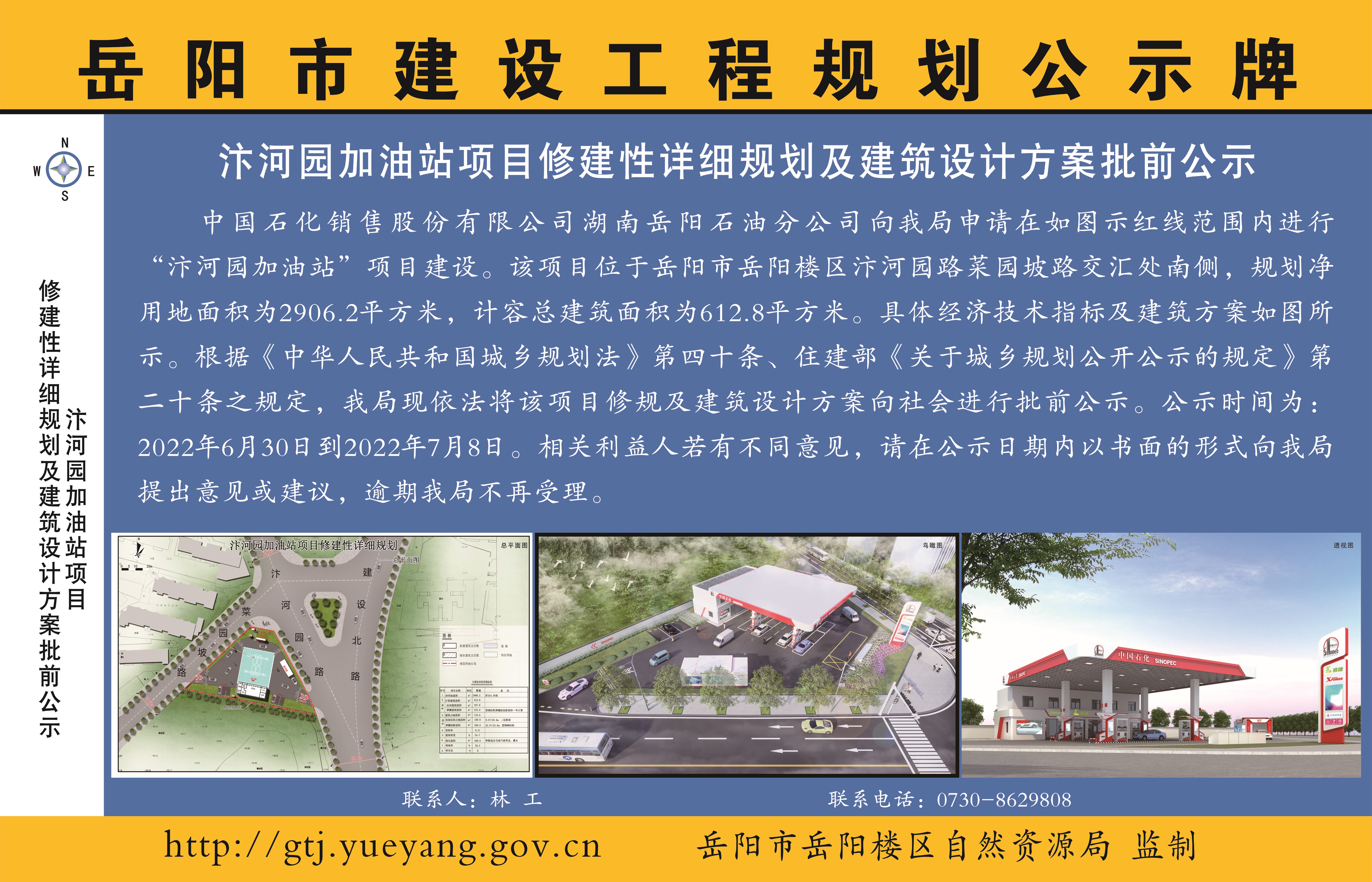 汴河园加油站项目修建性详细规划及建筑设计方案批前公示