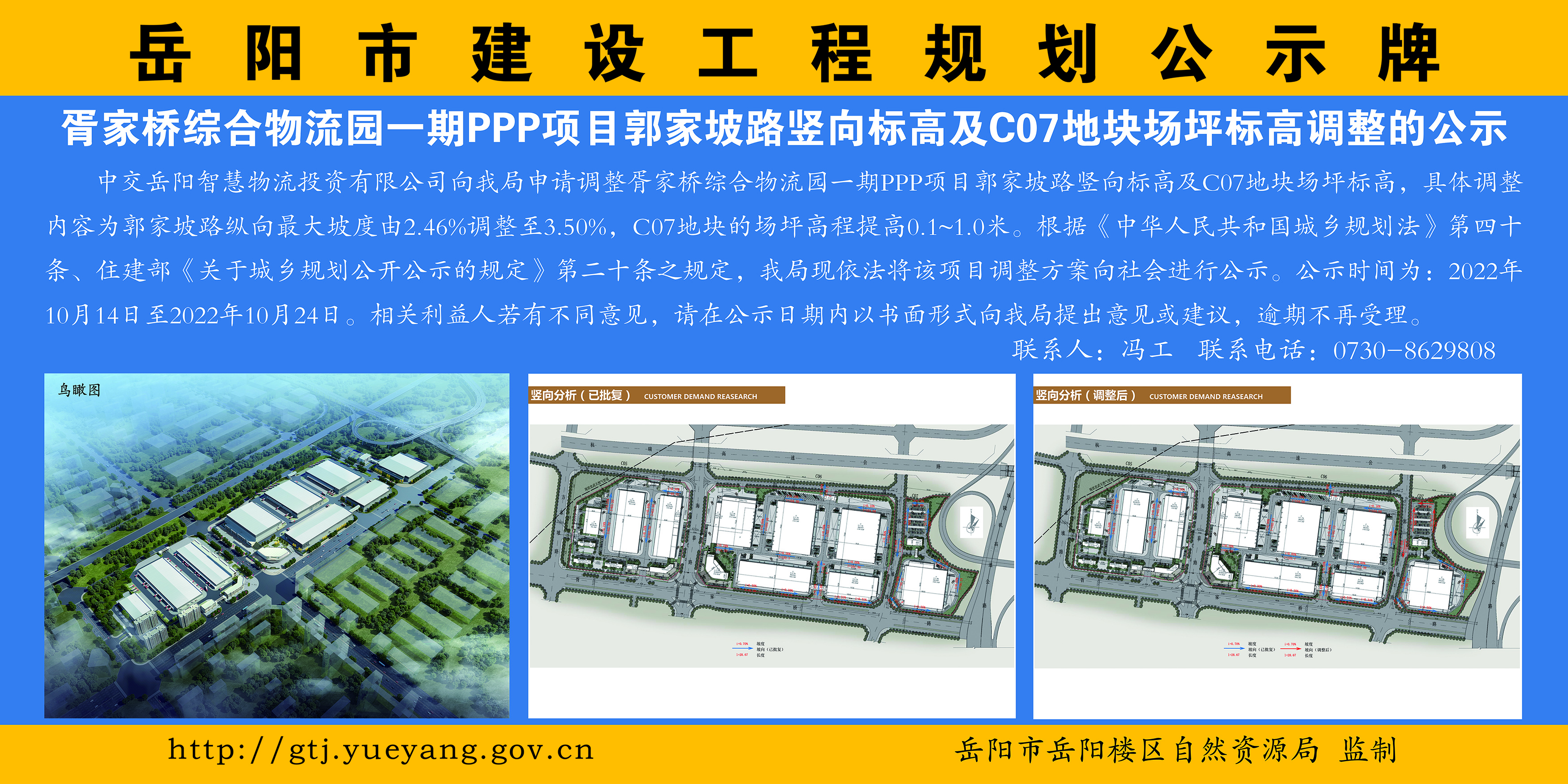 胥家桥综合物流园一期PPP项目郭家坡路竖向标高及C07地块场坪标高调整的公示